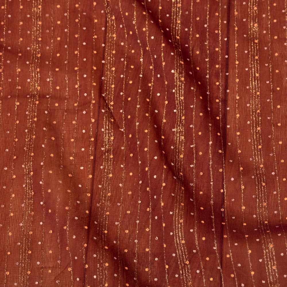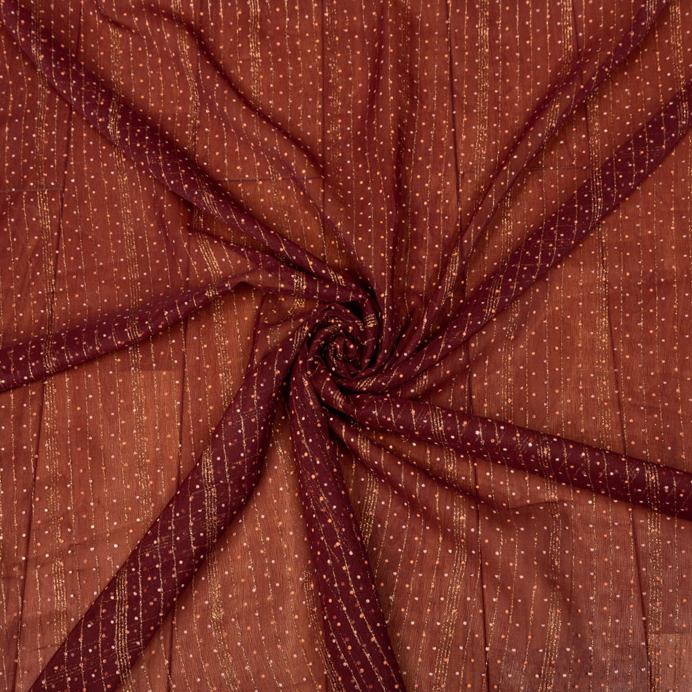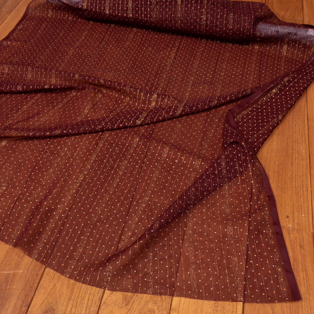 インドからやってきたシンプルだけどありそうでない、メッシュ生地の布です。インドらしい金色の塗料が施されていて、光を受けると華やかな雰囲気に。衣装素材や、小物作りに用いたり、アイデア次第でさまざまな用途でお使いいただけますね。透ける質感がきれいですので、部屋の仕切りや壁飾りにしても素敵です。