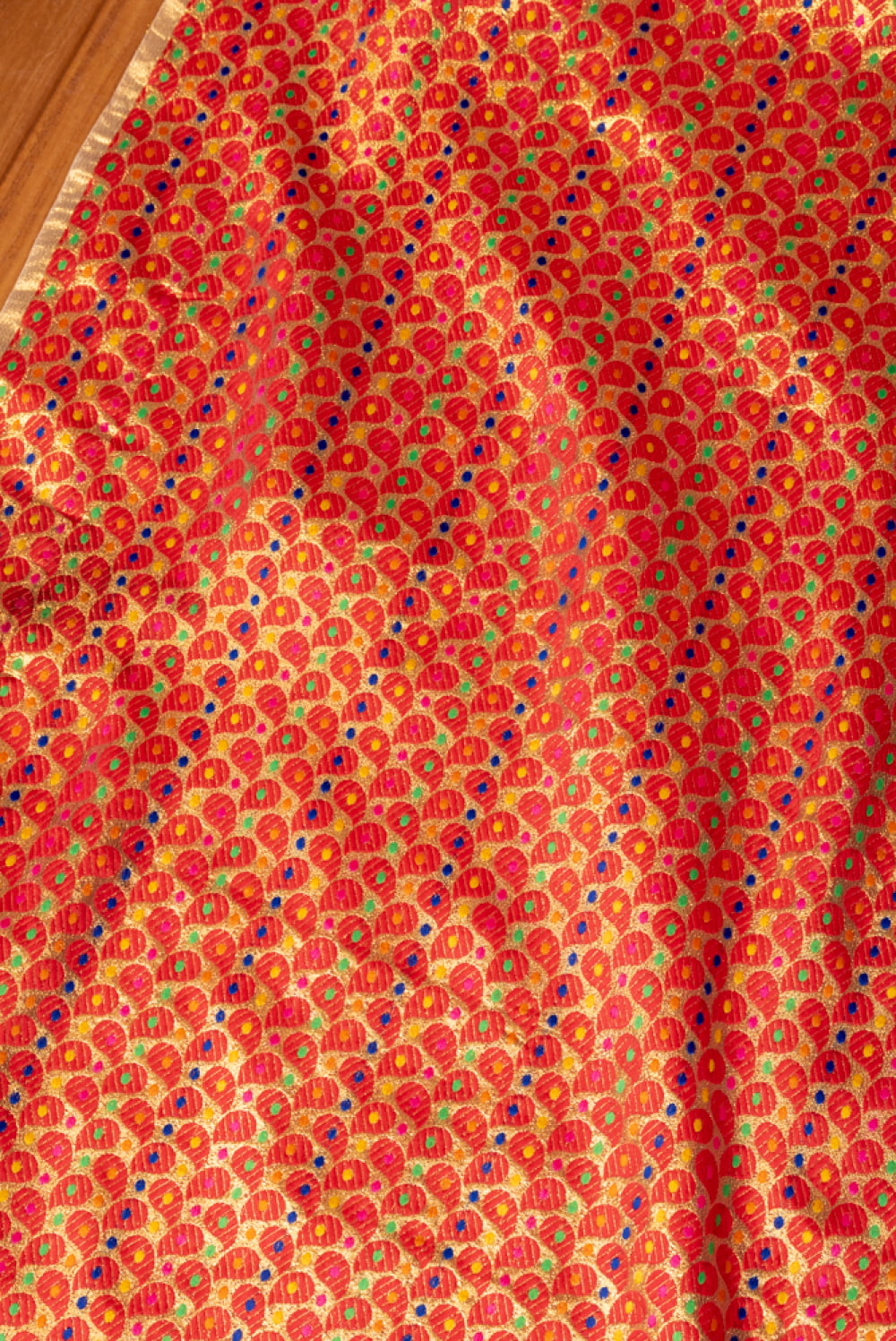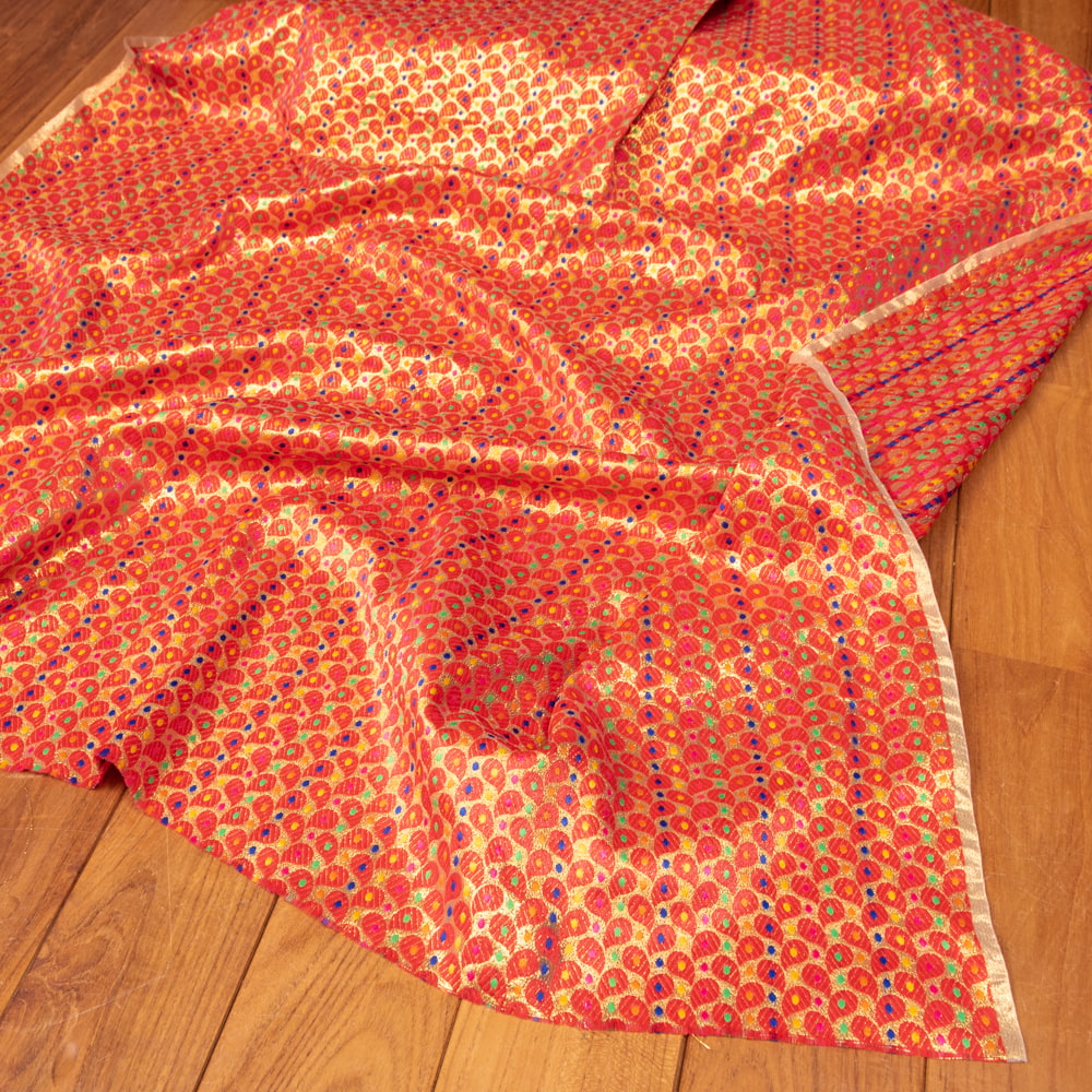 〔1m単位切り売り〕インドの伝統模様布 光沢感のあるブロケード生地 金糸〔約113cm〕レッド系 x 5個