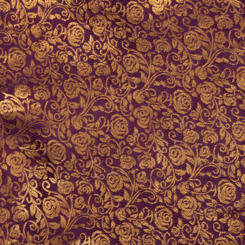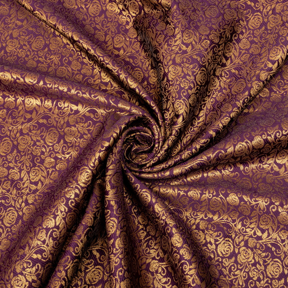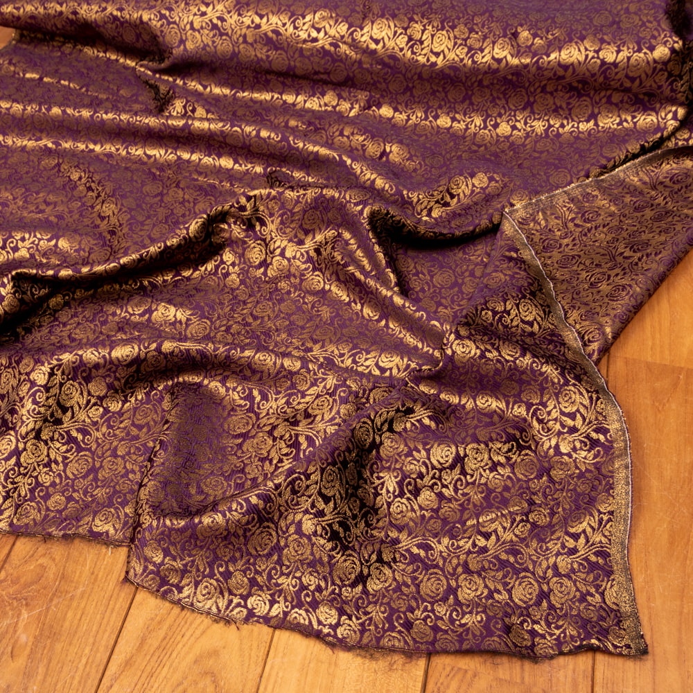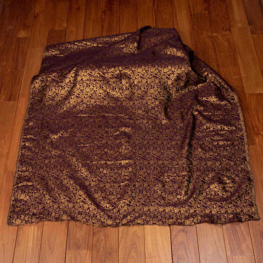 【5個セット】〔1m単位切り売り〕インドの伝統模様布 光沢感のあるブロケード生地 金糸〔約120cm〕パープル系の写真【5個セット】〔1m単位切り売り〕インドの伝統模様布 光沢感のあるブロケード生地 金糸〔約120cm〕パープル系 2 - とても雰囲気のある、インドからやって来た切り売りの生地です。【5個セット】〔1m単位切り売り〕インドの伝統模様布 光沢感のあるブロケード生地 金糸〔約120cm〕パープル系 3 - 全体を広げてみたところです。1mの長さごとにご購入いただけます。【5個セット】〔1m単位切り売り〕インドの伝統模様布 光沢感のあるブロケード生地 金糸〔約120cm〕パープル系 4 - インドならではの布ですね【5個セット】〔1m単位切り売り〕インドの伝統模様布 光沢感のあるブロケード生地 金糸〔約120cm〕パープル系 5 - 生地の拡大写真です【5個セット】〔1m単位切り売り〕インドの伝統模様布 光沢感のあるブロケード生地 金糸〔約120cm〕パープル系 6 - 陰影があるとこのような感じになります【5個セット】〔1m単位切り売り〕インドの伝統模様布 光沢感のあるブロケード生地 金糸〔約120cm〕パープル系 7 - 生地の拡大写真です【5個セット】〔1m単位切り売り〕インドの伝統模様布 光沢感のあるブロケード生地 金糸〔約120cm〕パープル系 8 - 類似サイズ品を1m切ってみたところです。横幅がしっかりあるので、結構沢山使えますよ。【5個セット】〔1m単位切り売り〕インドの伝統模様布 光沢感のあるブロケード生地 金糸〔約120cm〕パープル系 9 - 衣料品やバッグなどの手芸用素材として、カーテンやカバーなどアイデア次第でさまざまな用途にご使用いただけます。