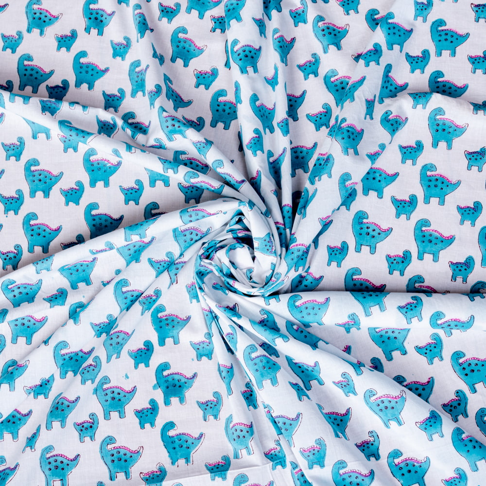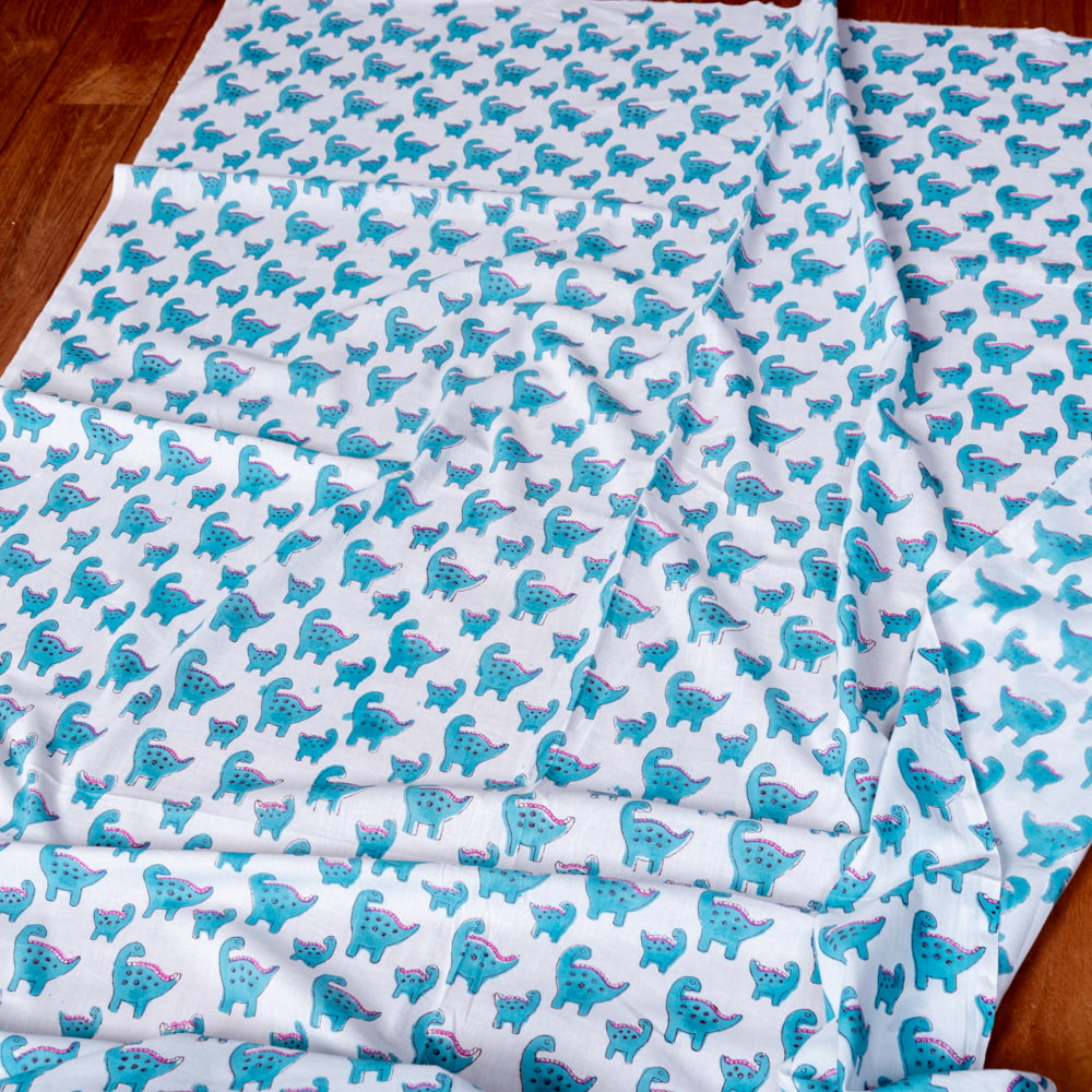 〔1m単位切り売り〕ジャイプル 職人手作り インド伝統の木版染め更紗マルチクロス〔幅約114cm〕 - インドの恐竜家族さん x 5個
