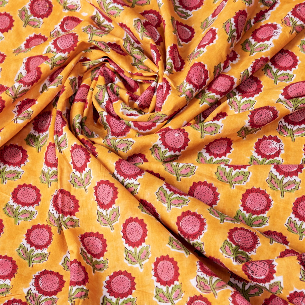 【5個セット】〔1m切単位り売り〕ジャイプル 職人手作り木版染め 色彩美しいボタニカルデザイン おしゃれ 生地 花柄 テーブルクロス 刺繍素材などへ〔幅約108cm〕 - オレンジ系の同一カテゴリ商品