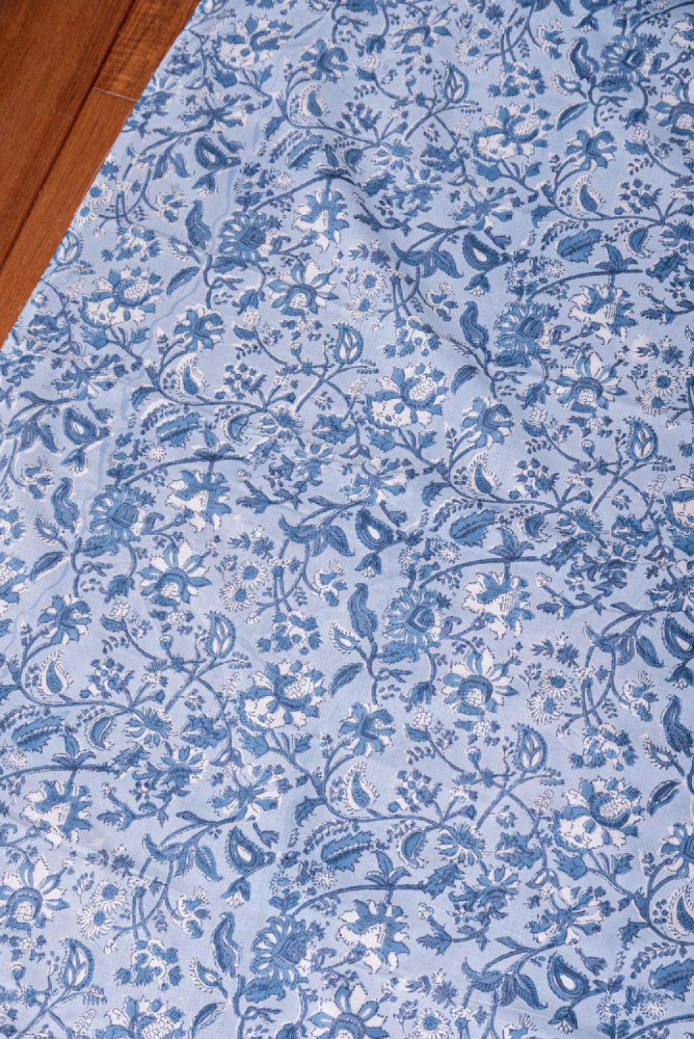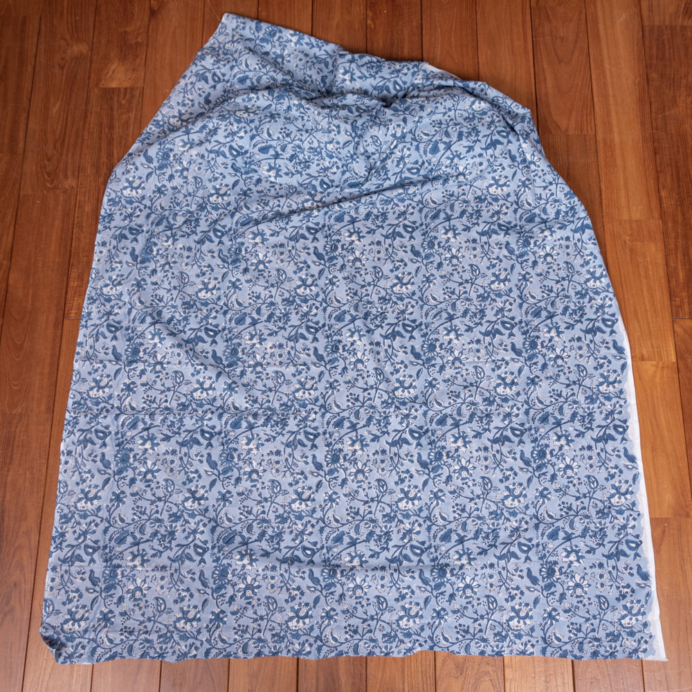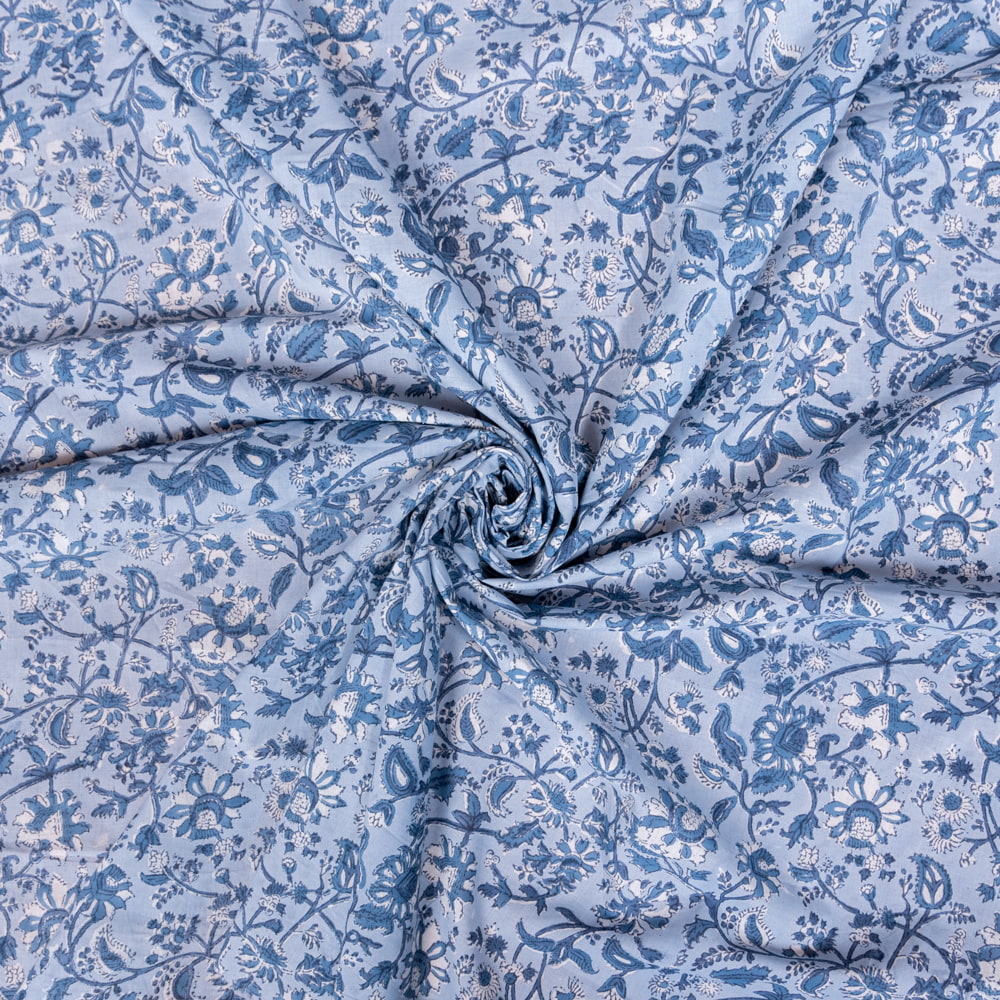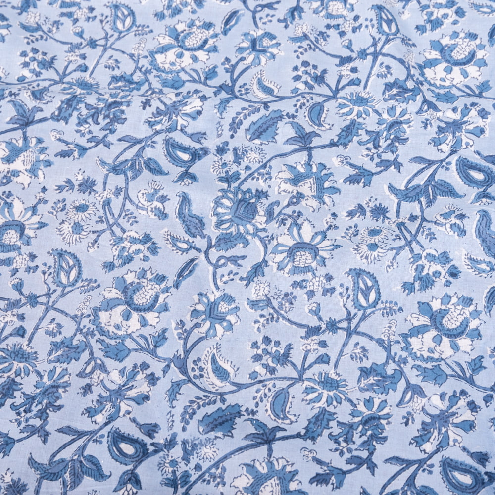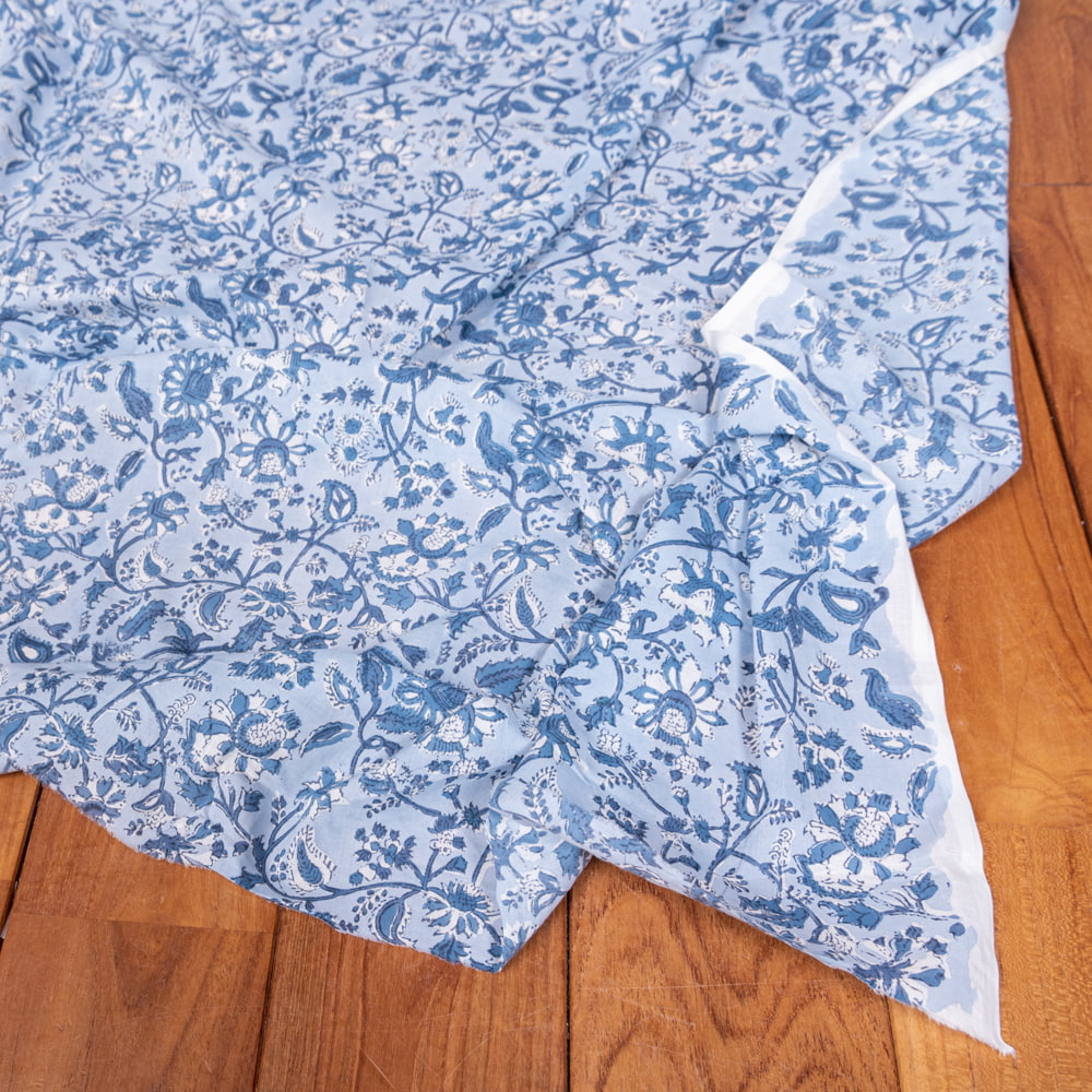 〔1m単位切り売り〕ジャイプル 職人手作り木版染め 色彩美しいボタニカルデザイン おしゃれ 生地 花柄 テーブルクロス 刺繍素材などへ〔幅約110cm〕 - ブルー系 x 5個
