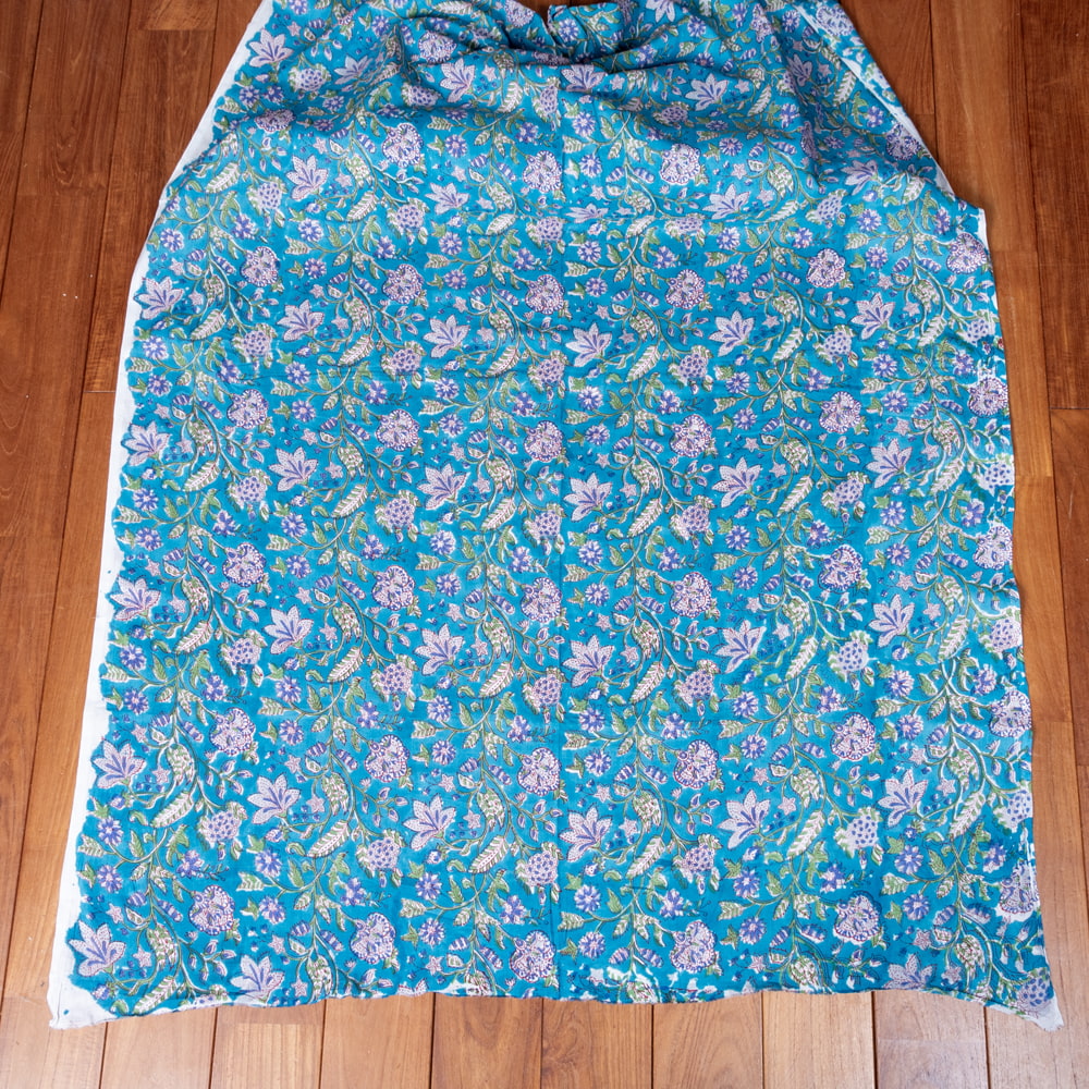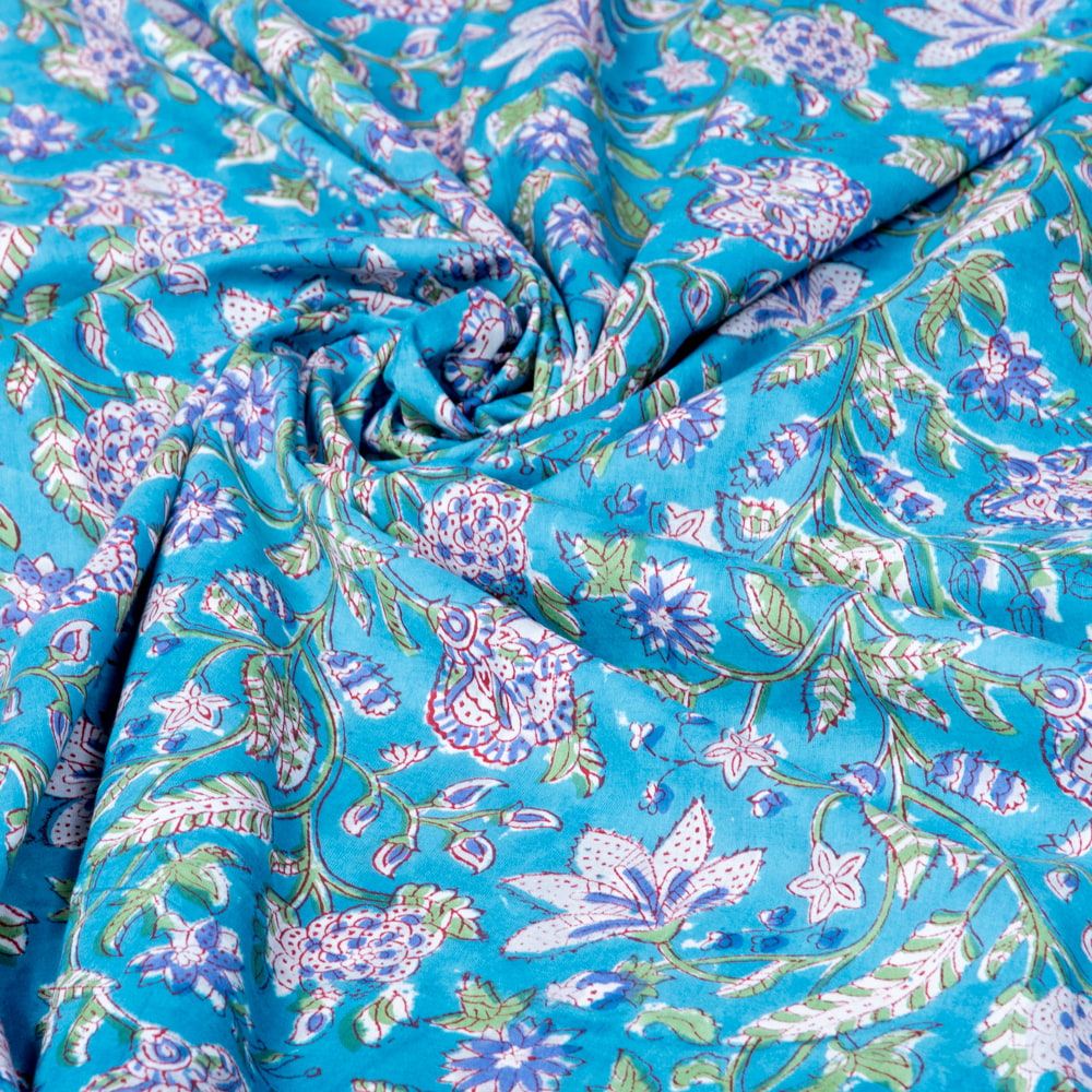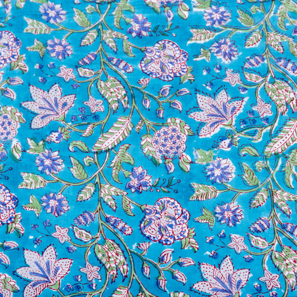 〔1m単位切り売り〕ジャイプル 職人手作り木版染め 色彩美しいボタニカルデザイン おしゃれ 生地 花柄 テーブルクロス 刺繍素材などへ〔幅約110cm〕 - ブルー系 x 5個