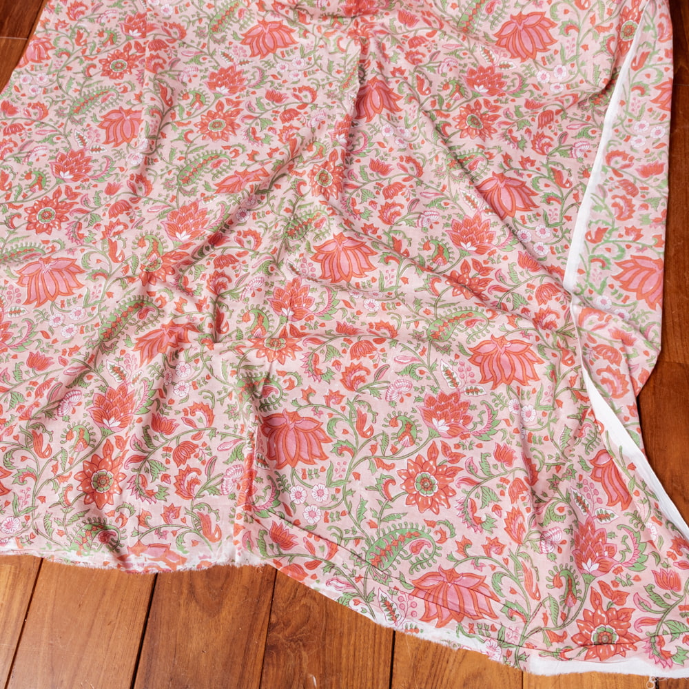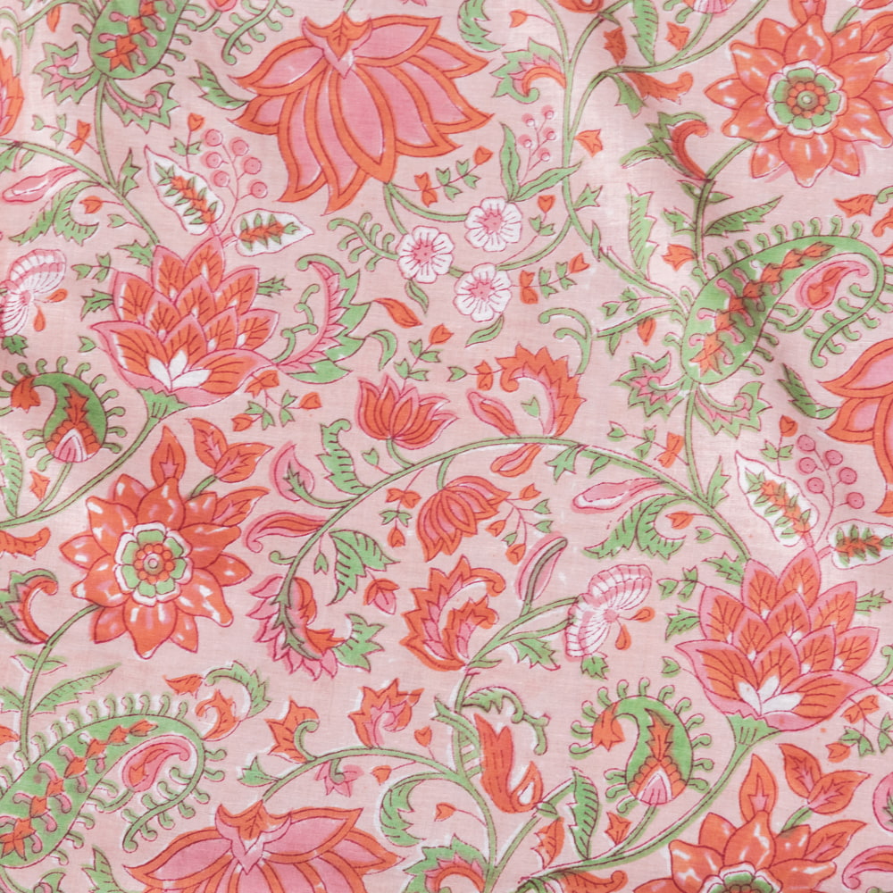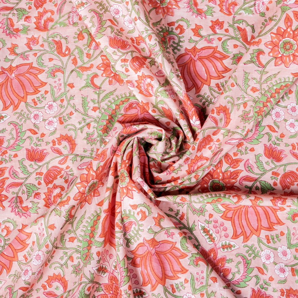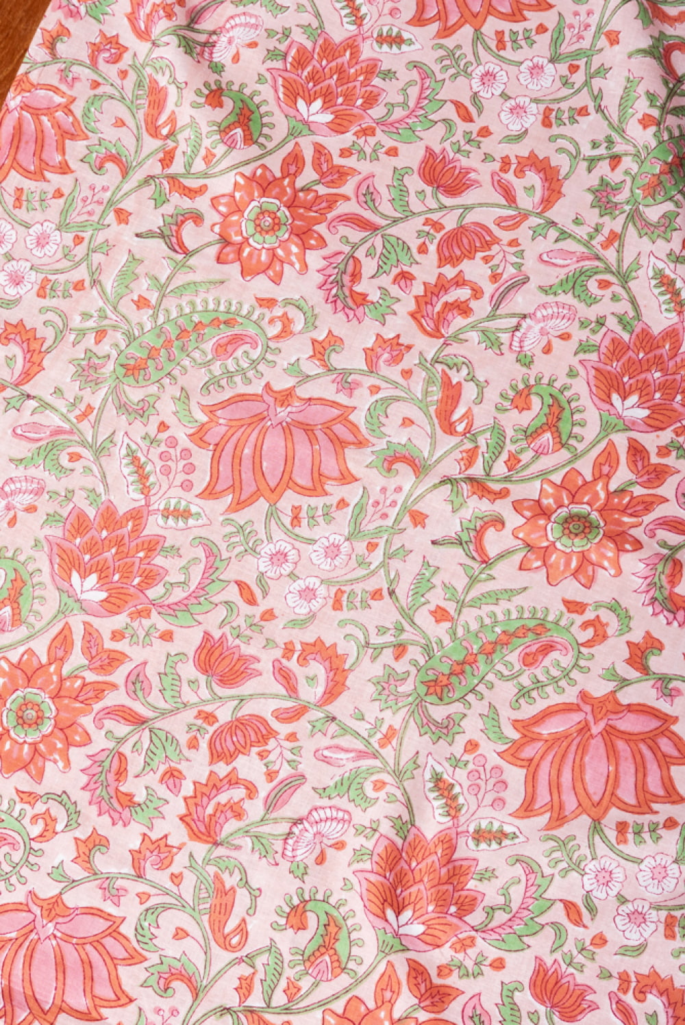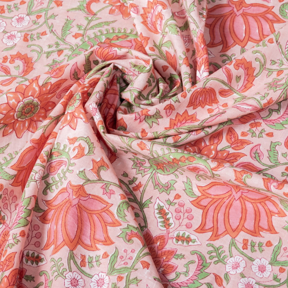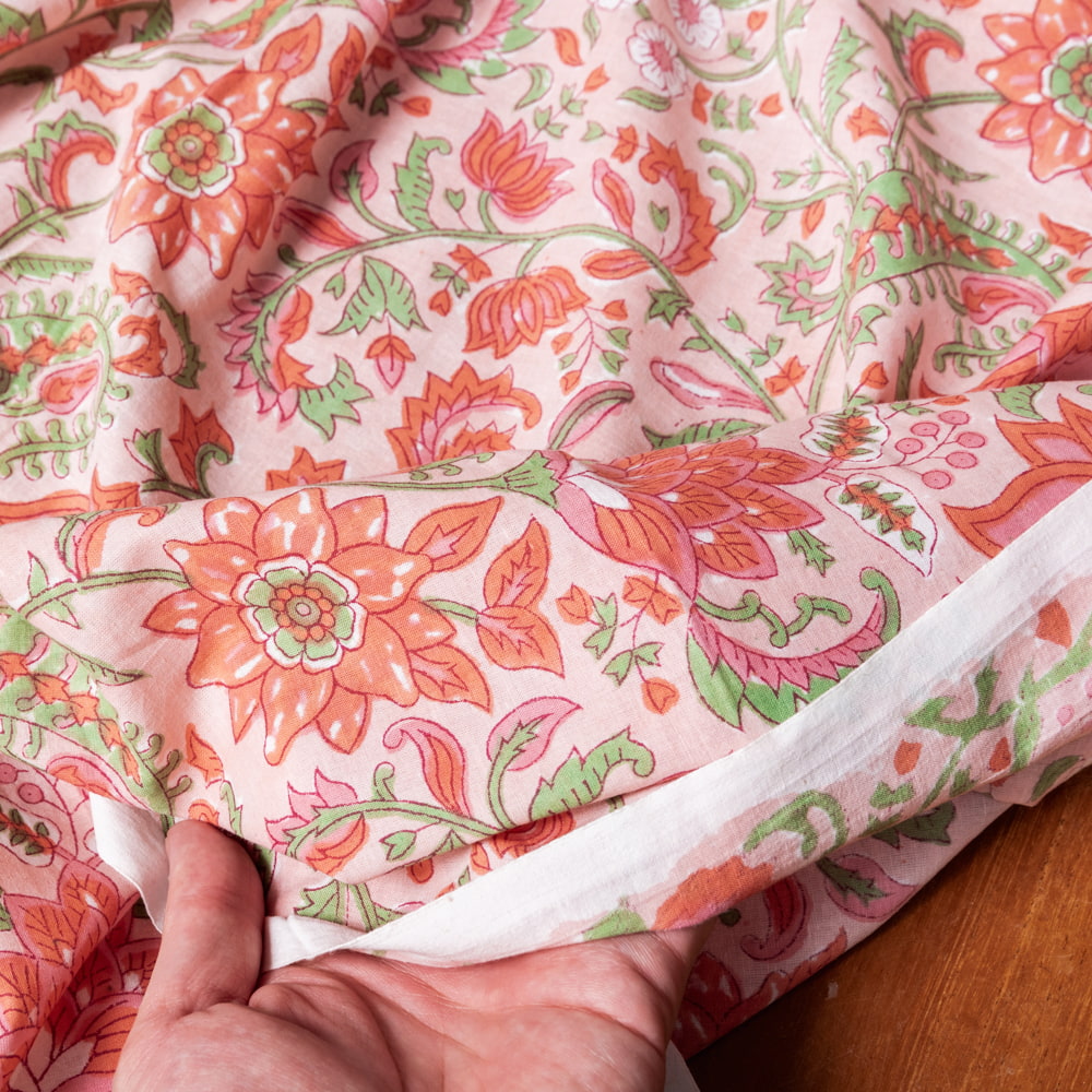 〔1m単位切り売り〕ジャイプル 職人手作り木版染め 色彩美しいボタニカルデザイン おしゃれ 生地 花柄 テーブルクロス 刺繍素材などへ〔幅約111cm〕 - ピンク系 x 5個