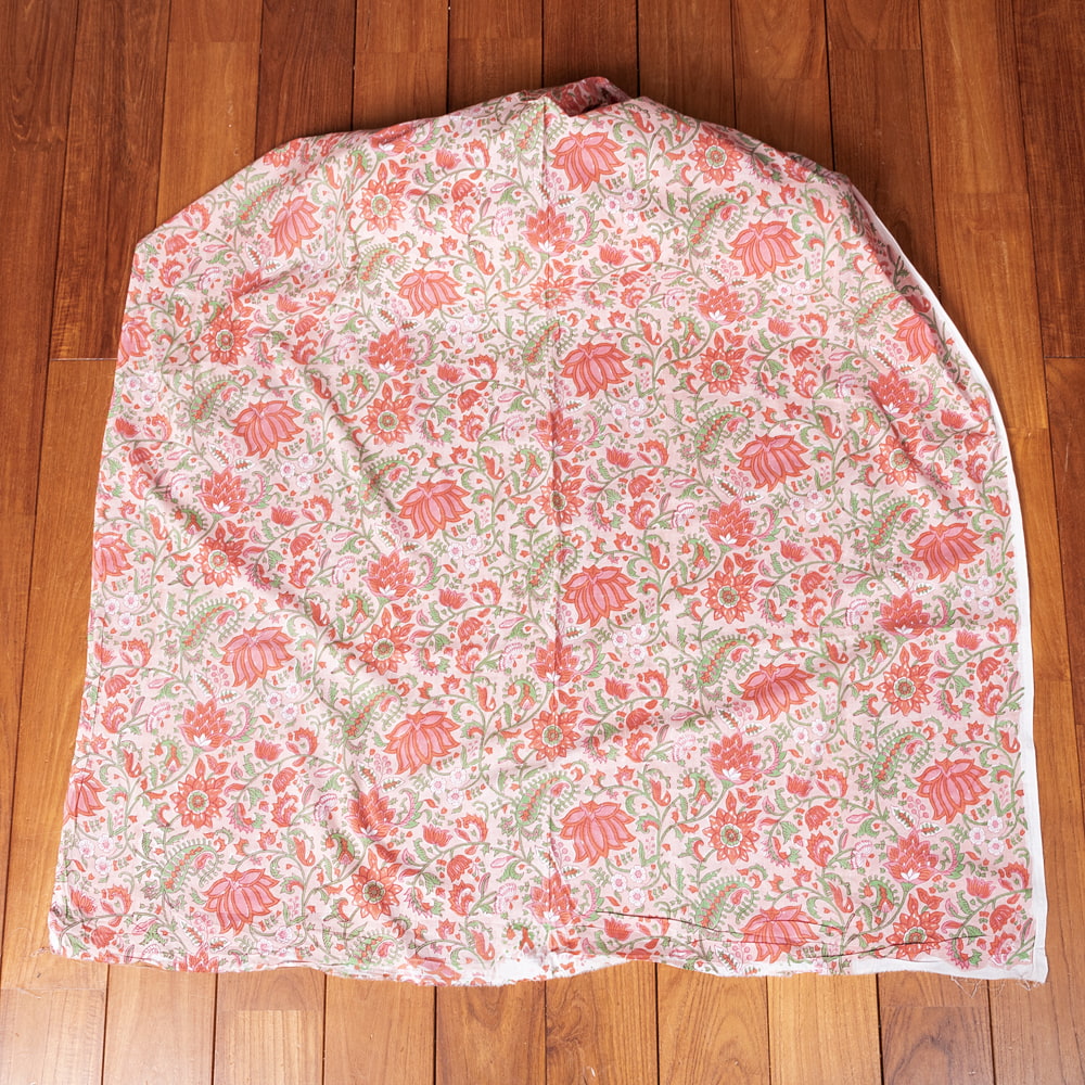 木版染めとは、ウッドブロック(木版)を用いて一つ一つ模様を染めこんだ優雅で贅沢な仕上がりの布です。大量生産には向かない、非常に時間のかかる丁寧な手仕事の賜物といえます。インドは美しい布の宝庫ですが、その中でも特に素敵な一枚に仕上がっています。ハンドメイドのウッドブロックプリントにしか出せない、独特のムラがありとても雰囲気があります。