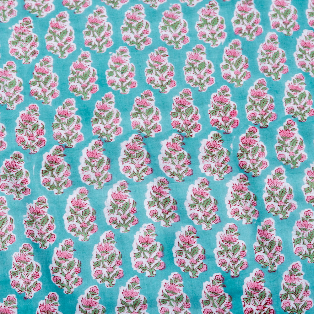 とってもかわいい生地がジャイプルからやってきました。どこかプロヴァンスなテイストも感じさせる、魅力的な色彩とデザイン。職人さんが全て手作りしており、インドらしい木版と鮮やかな色彩がきわだつ、インド綿100%のファブリックです。ナチュラルな風合いは、派手すぎずほどよく上品な雰囲気で、どんなお部屋にも馴染み、相性良くフィットしてくれそうです。