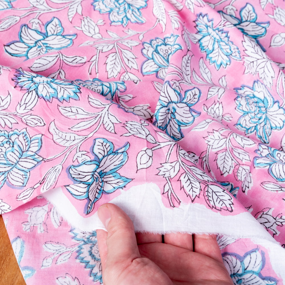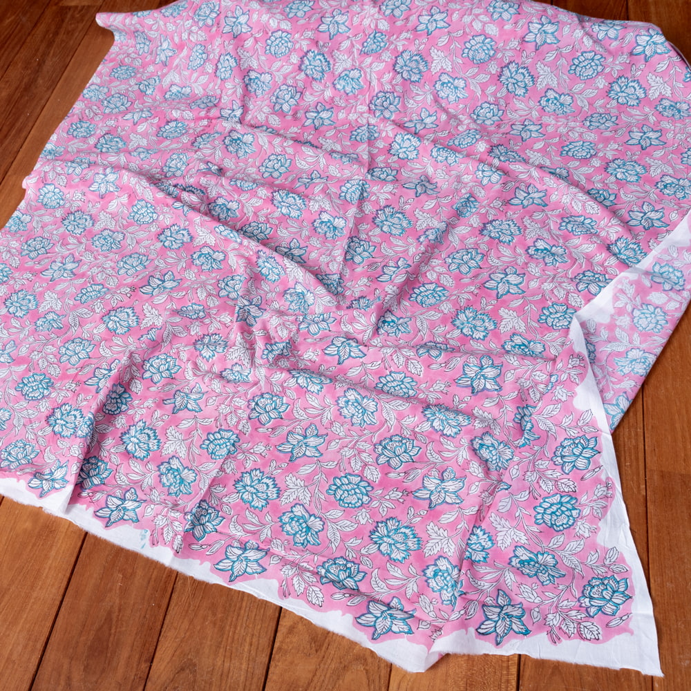 〔1m単位切り売り〕ジャイプル 職人手作り木版染め 色彩美しいボタニカルデザイン おしゃれ 生地 花柄 テーブルクロス 刺繍素材などへ〔幅約113cm〕 - ピンク系 x 5個