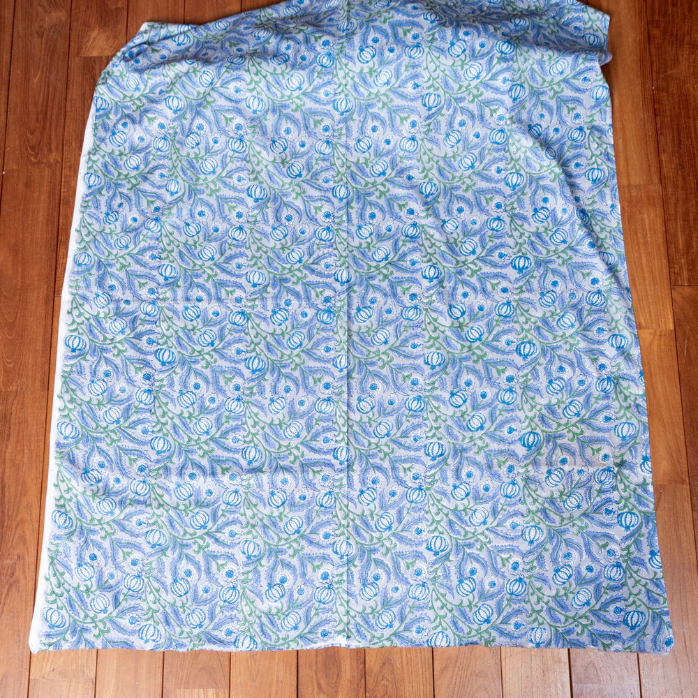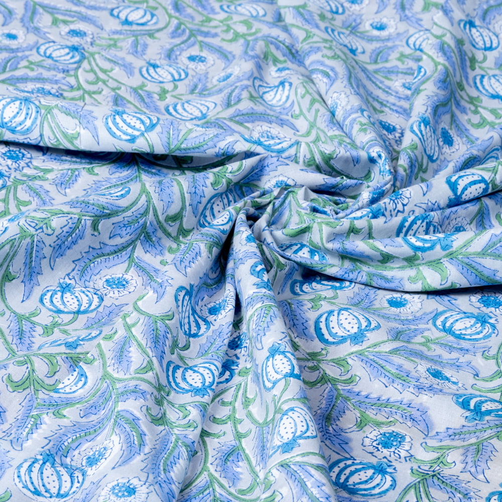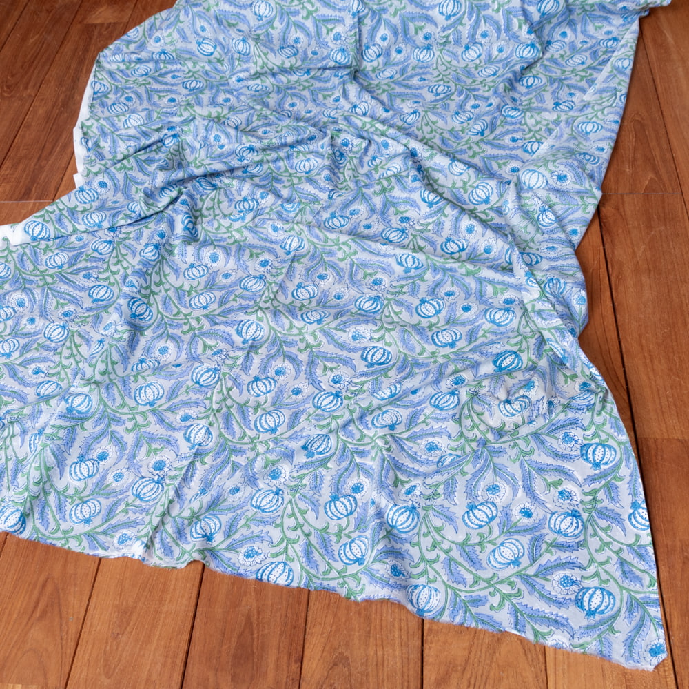〔1m単位切り売り〕ジャイプル 職人手作り木版染め 色彩美しいボタニカルデザイン おしゃれ 生地 花柄 テーブルクロス 刺繍素材などへ〔幅約113cm〕 - ブルー系 x 5個