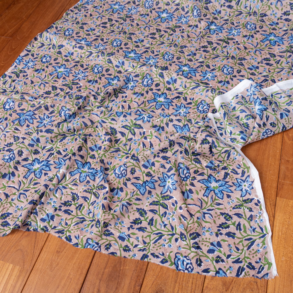 〔1m単位切り売り〕ジャイプル 職人手作り木版染め 色彩美しいボタニカルデザイン おしゃれ 生地 花柄 テーブルクロス 刺繍素材などへ〔約110cm〕 x 5個