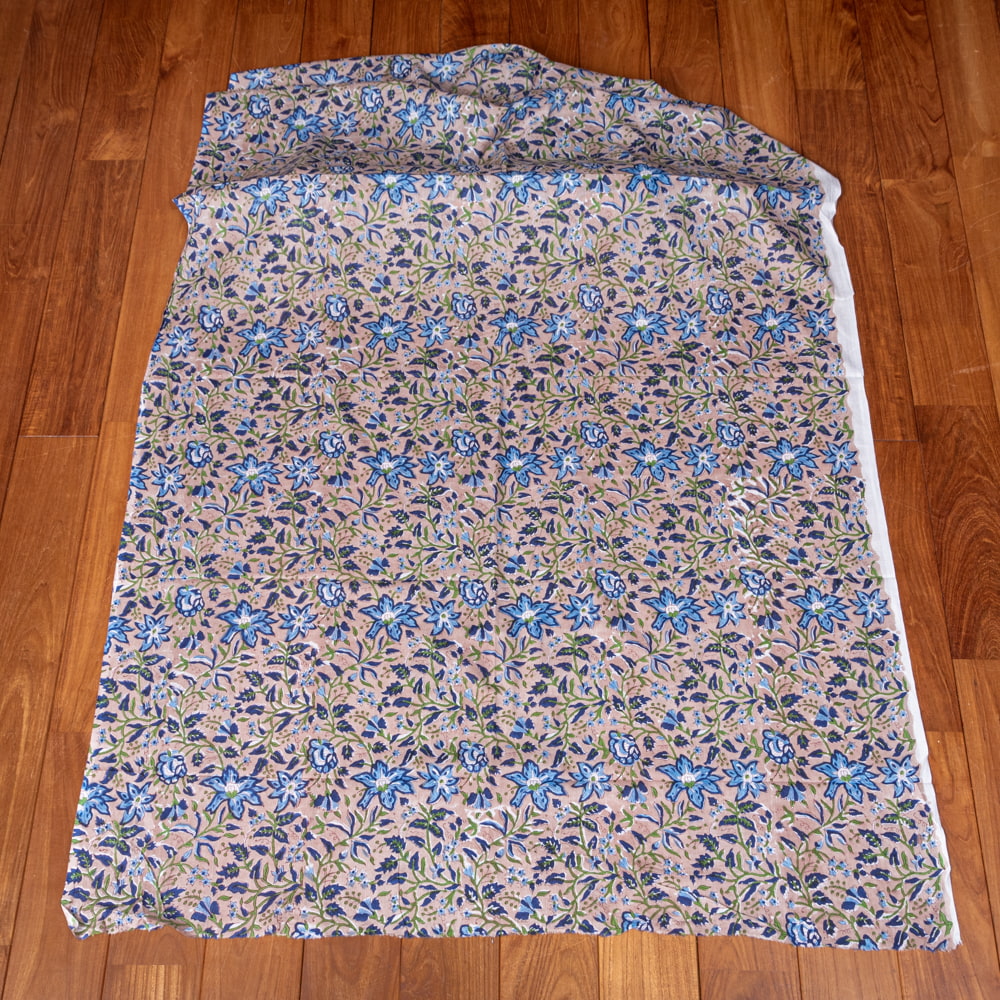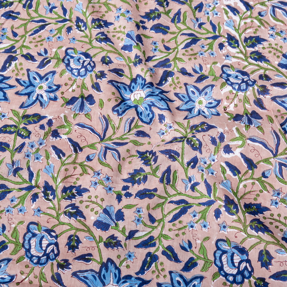 とってもかわいい生地がジャイプルからやってきました。どこかプロヴァンスなテイストも感じさせる、魅力的な色彩とデザイン。職人さんが全て手作りしており、インドらしい木版と鮮やかな色彩がきわだつ、インド綿100%のファブリックです。ナチュラルな風合いは、派手すぎずほどよく上品な雰囲気で、どんなお部屋にも馴染み、相性良くフィットしてくれそうです。