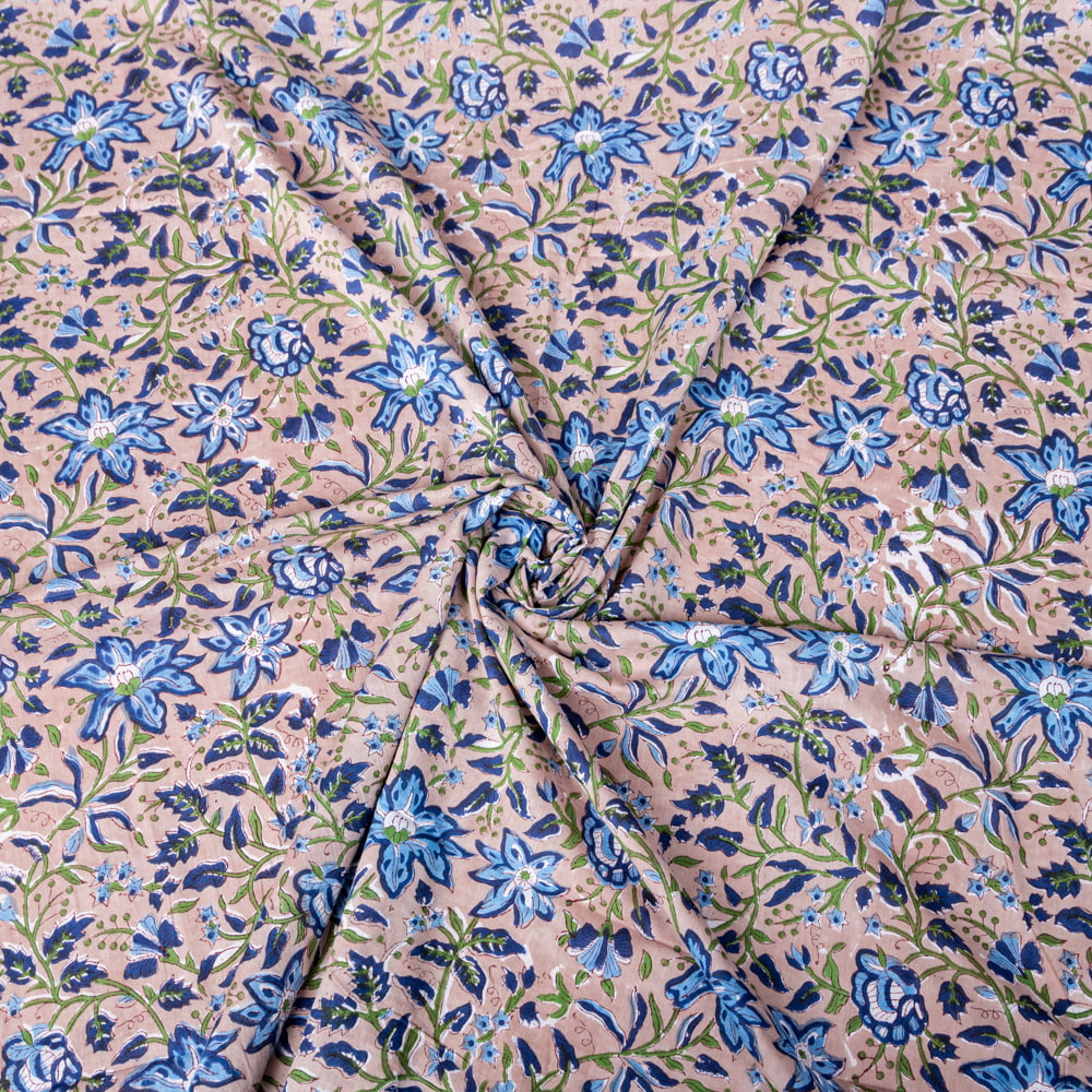 【5個セット】〔1m切単位り売り〕ジャイプル 職人手作り木版染め 色彩美しいボタニカルデザイン おしゃれ 生地 花柄 テーブルクロス 刺繍素材などへ〔約110cm〕