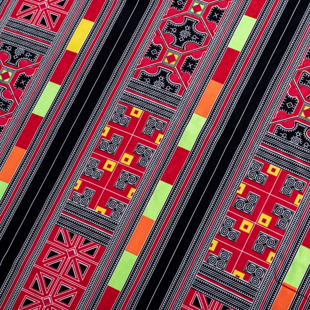 【5個セット】〔1m切単位り売り〕モン族の刺繍風プリントファブリック 生地 少数民族 フォークロア 民俗的 トライバル〔約162cm〕 通販店