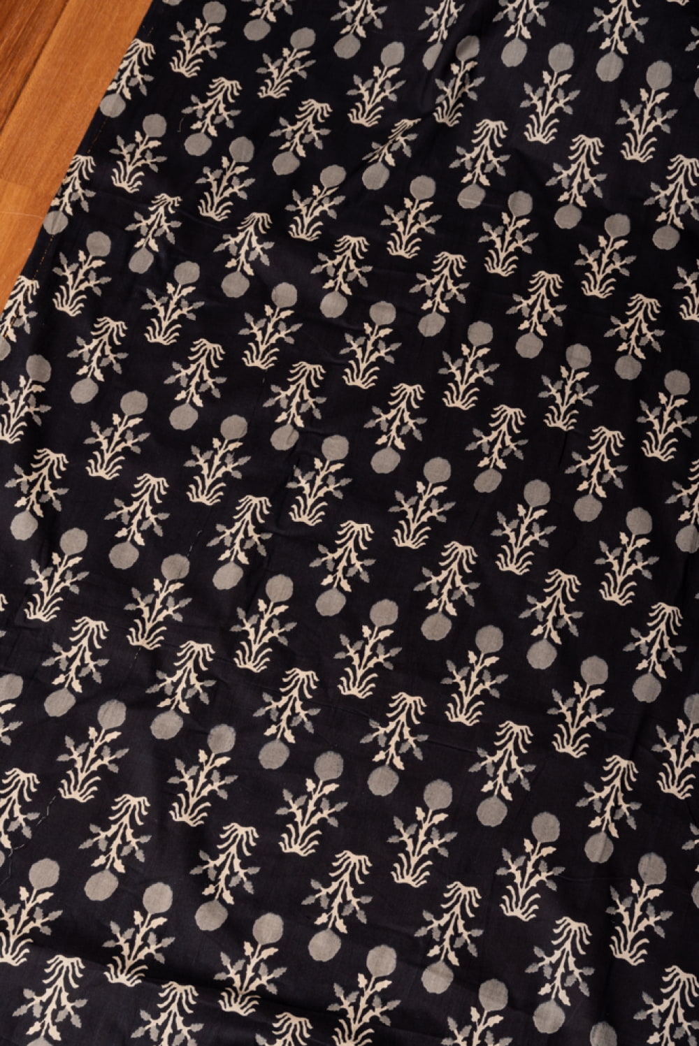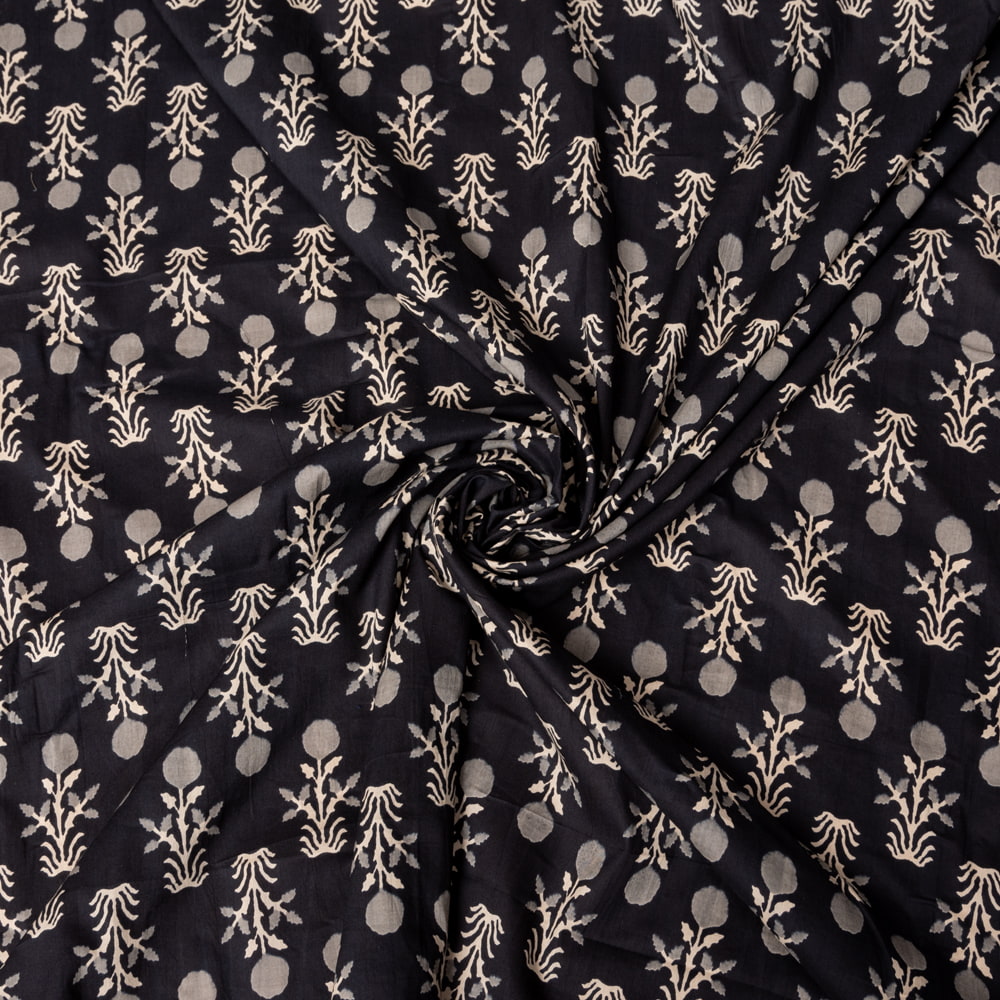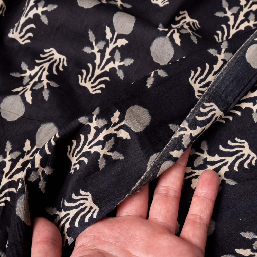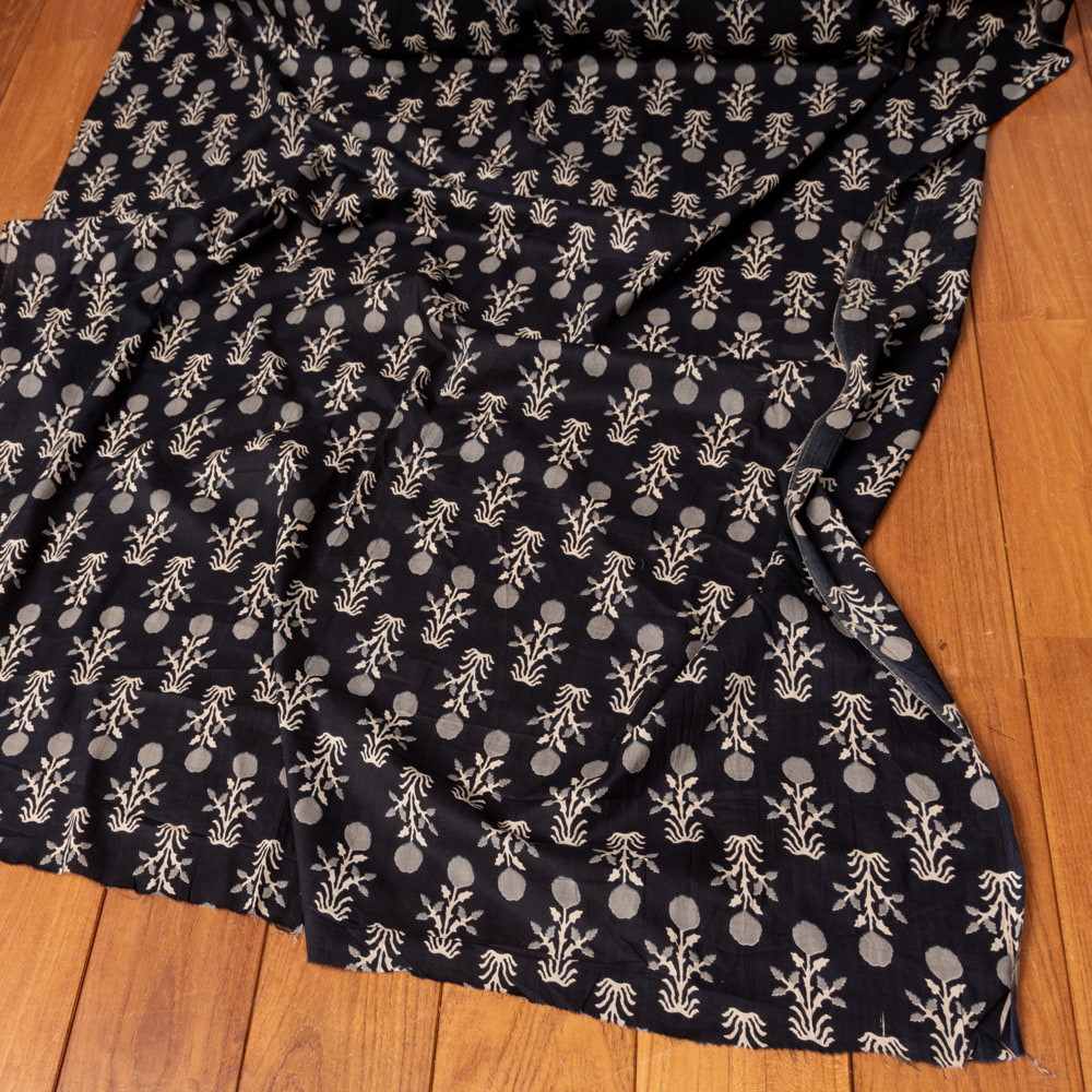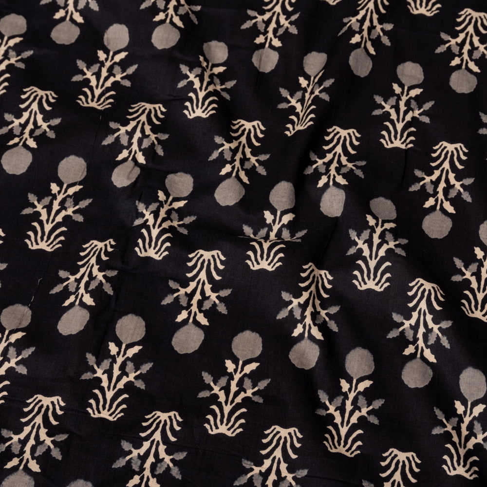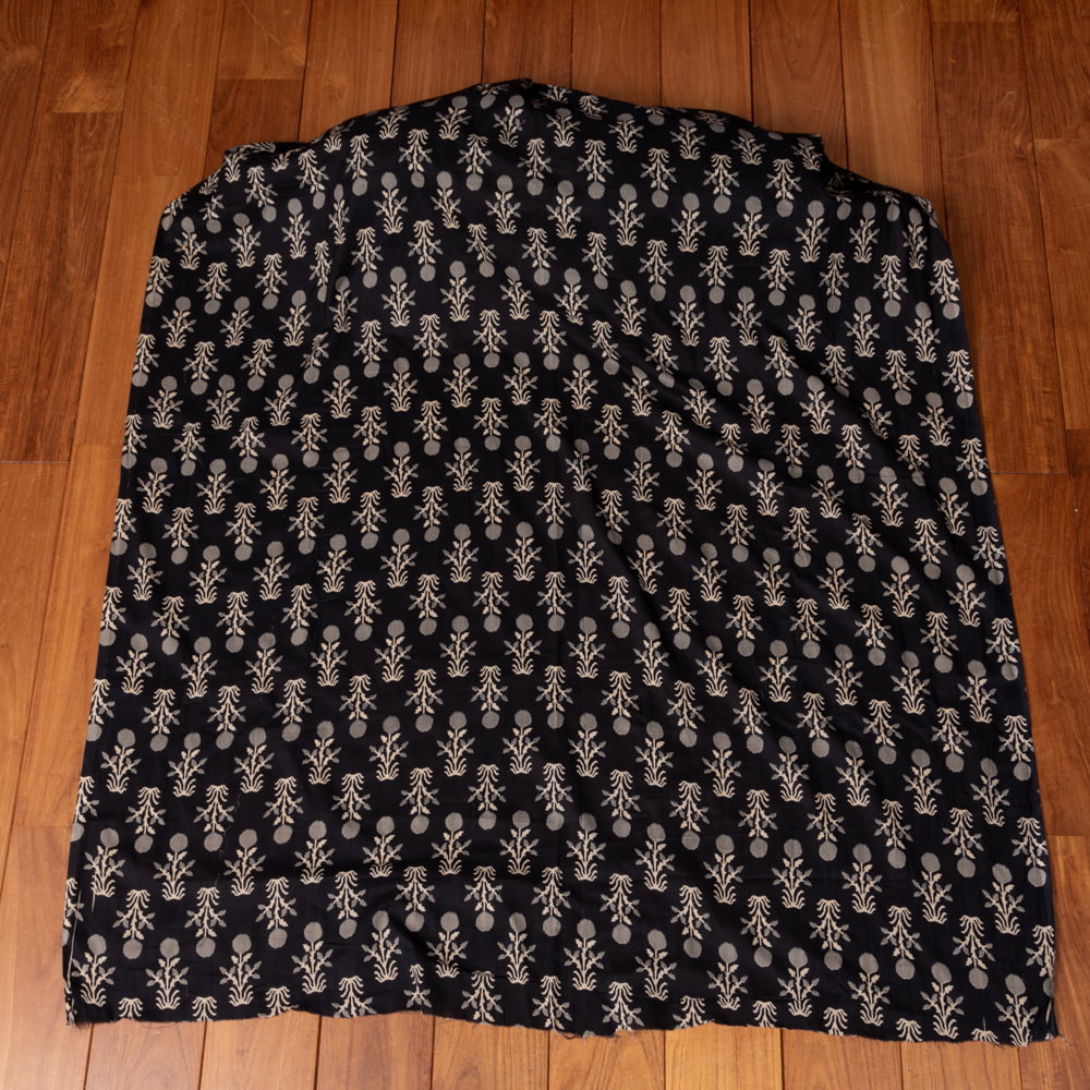 〔1m単位切り売り〕伝統息づく南インドから 昔ながらの更紗模様布〔約107cm〕ブラック系 x 5個