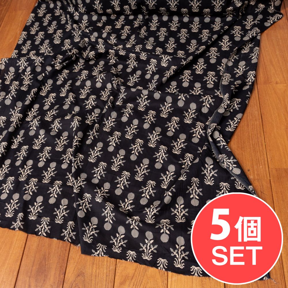 【5個セット】〔1m単位切り売り〕伝統息づく南インドから 昔ながらの更紗模様布〔約107cm〕ブラック系