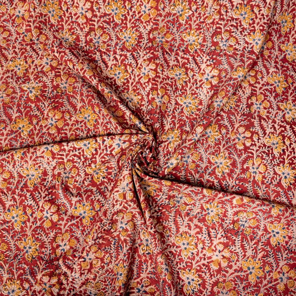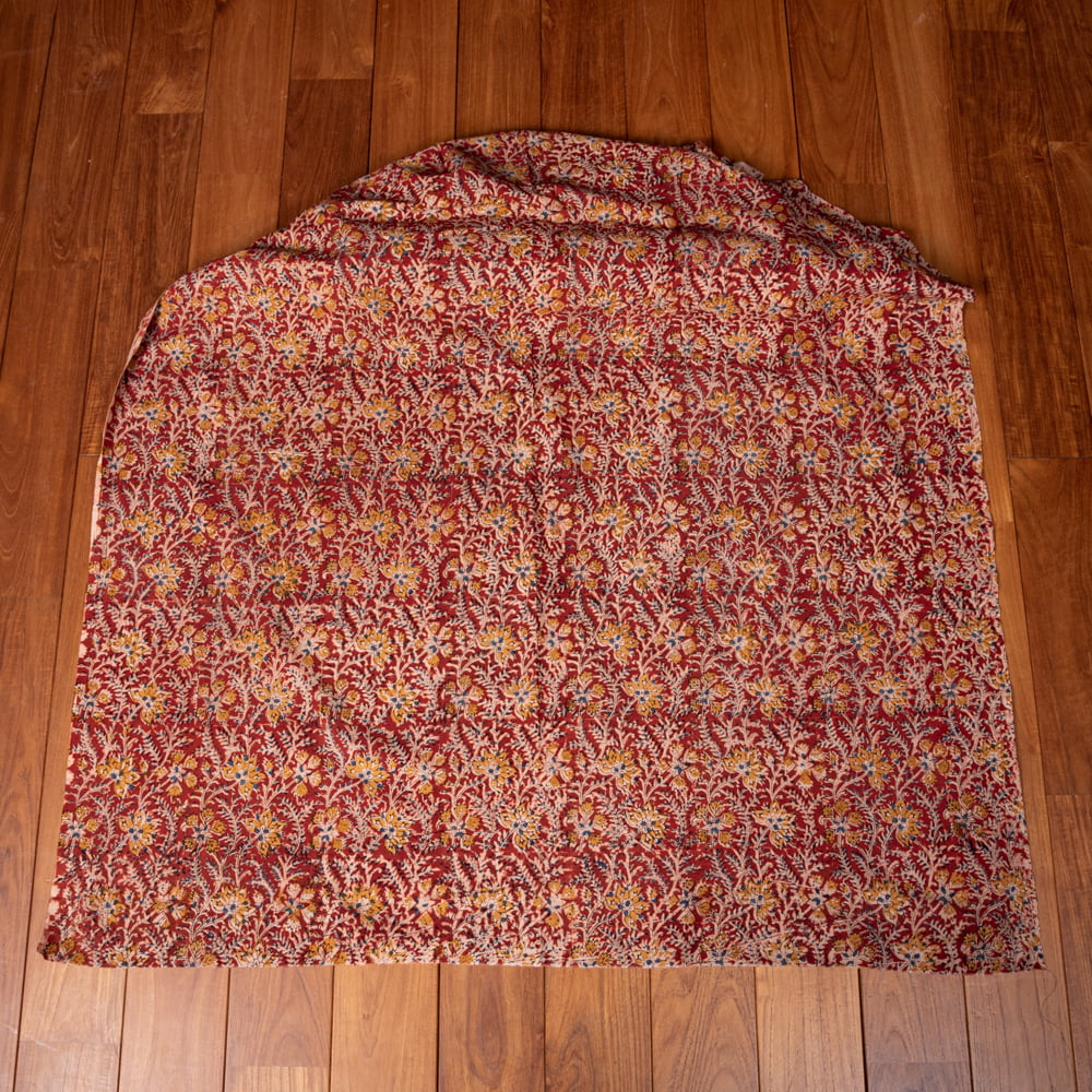 【5個セット】〔1m切単位り売り〕伝統息づく南インドから 昔ながらの木版染め更紗模様布〔約106cm〕 - レッドの商品写真 7枚目 生地を広げてみたところです。横幅もしっかりあります。注文個数に応じた長さにカットしてお送りいたします。