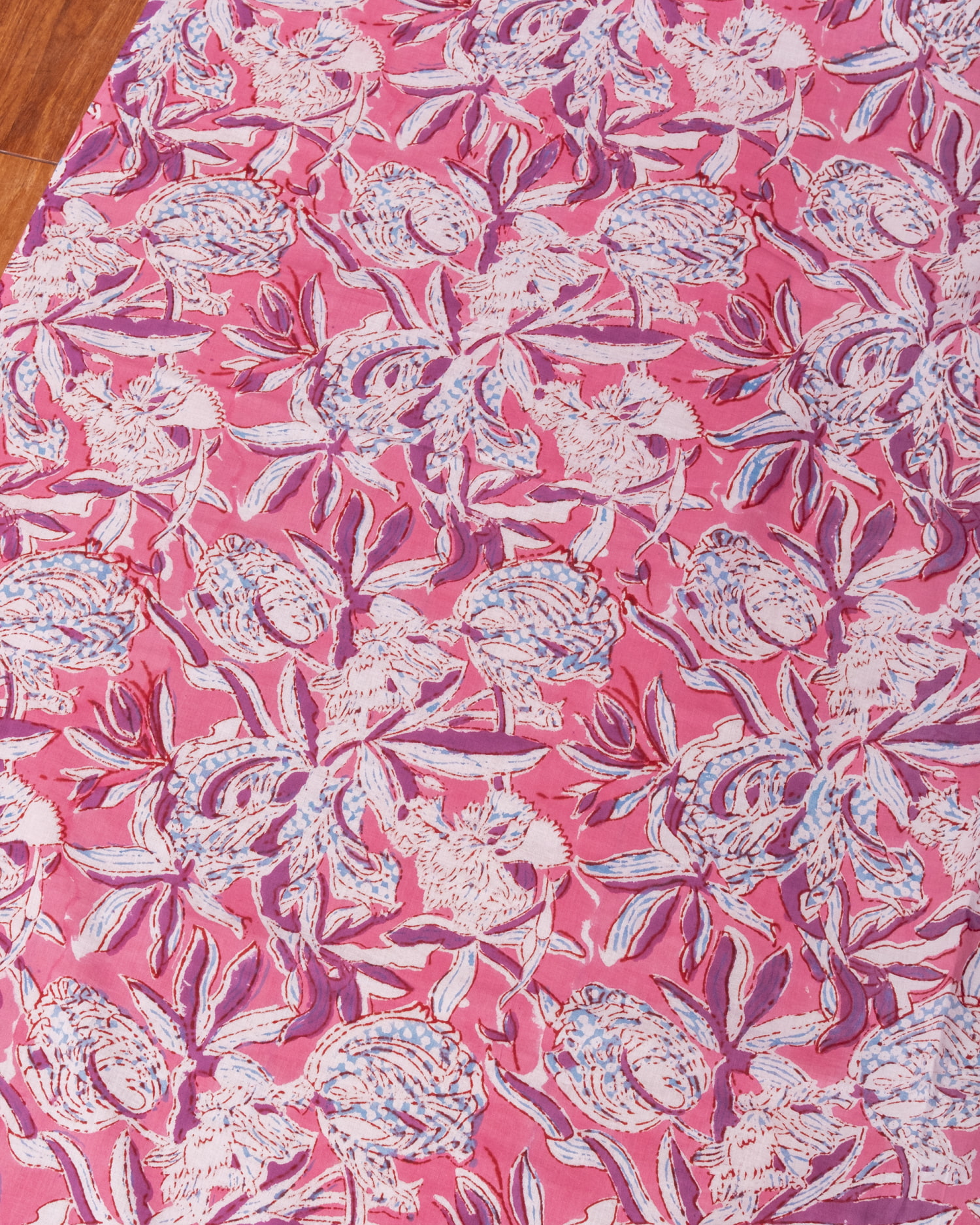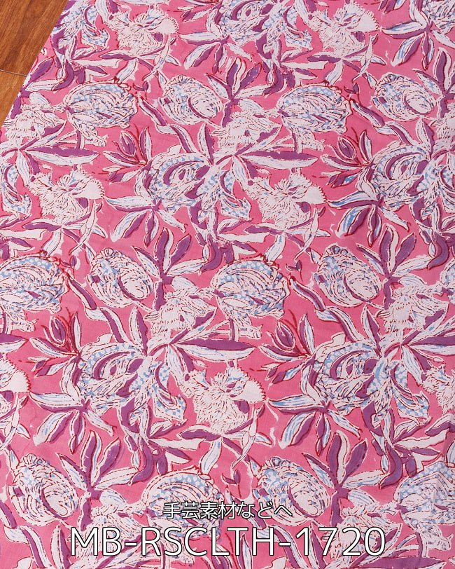 〔1m単位切り売り〕ジャイプル 職人手作り木版染め 色彩美しいボタニカルデザイン〔幅約108cm〕〔ピンク系 更紗柄〕 おしゃれ 生地 テーブルクロス 手芸素材などへ x 3個