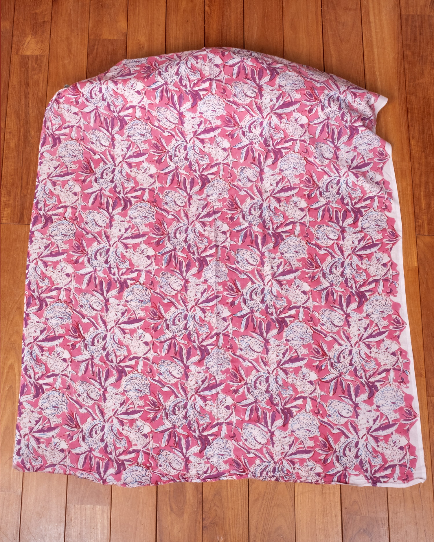 とってもかわいい生地がジャイプルからやってきました。どこかプロヴァンスなテイストも感じさせる、魅力的な色彩とデザイン。職人さんが全て手作りしており、インドらしい木版と鮮やかな色彩がきわだつ、インド綿100%のファブリックです。ナチュラルな風合いは、派手すぎずほどよく上品な雰囲気で、どんなお部屋にも馴染み、相性良くフィットしてくれそうです。