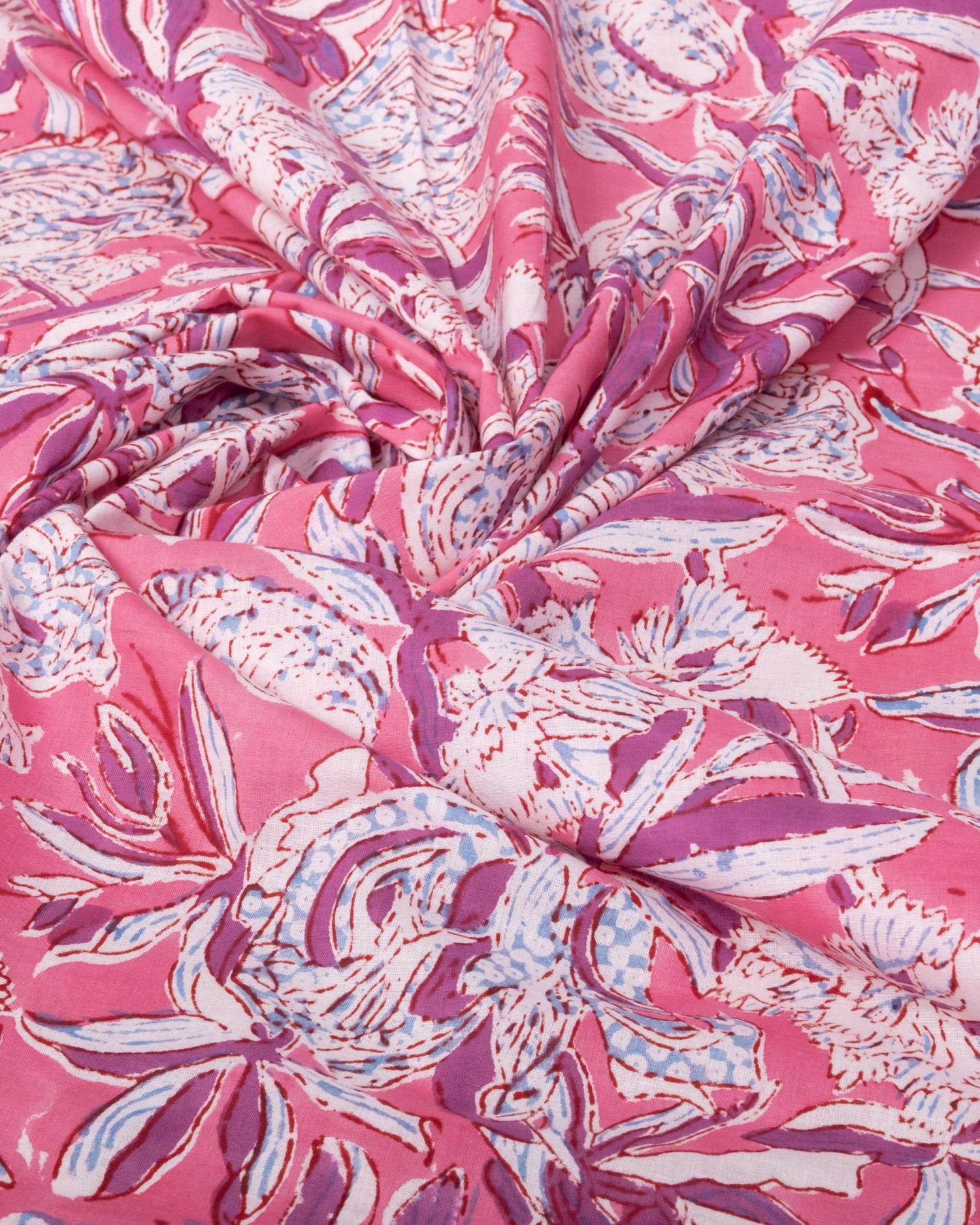 【3個セット】〔1m単位切り売り〕ジャイプル 職人手作り木版染め 色彩美しいボタニカルデザイン〔幅約108cm〕〔ピンク系 更紗柄〕 おしゃれ 生地 テーブルクロス 手芸素材などへ
