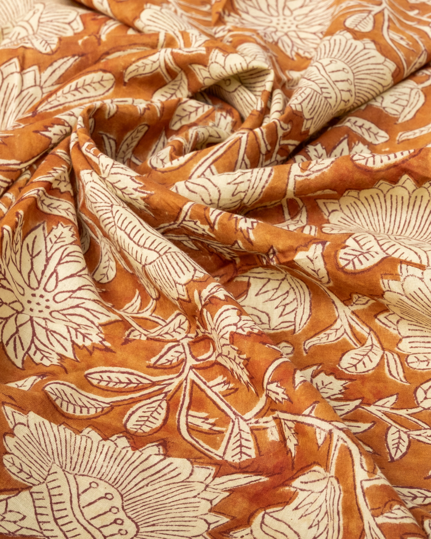 【3個セット】〔1m単位切り売り〕ジャイプル 職人手作り木版染め 色彩美しいボタニカルデザイン〔幅約110cm〕〔ブラウン系 更紗柄〕 おしゃれ 生地 テーブルクロス 手芸素材などへ