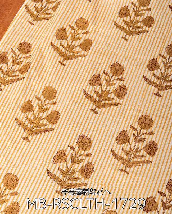 〔1m単位切り売り〕ジャイプル 職人手作り木版染め 色彩美しいボタニカルデザイン〔幅約112cm〕〔ベージュ×ブラウン系 花柄〕 おしゃれ 生地 テーブルクロス 手芸素材などへ x 3個