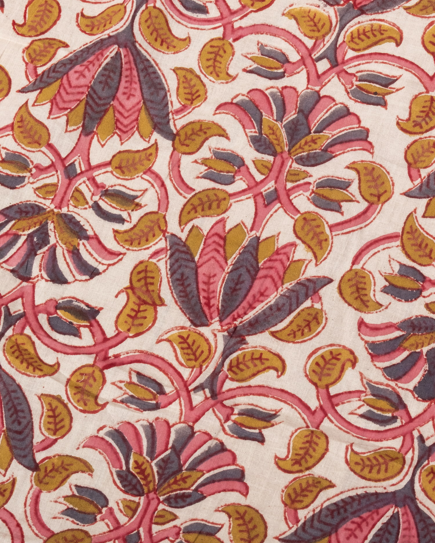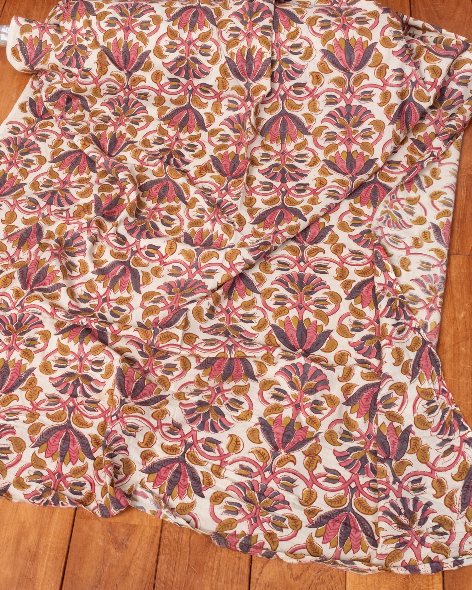 とってもかわいい生地がジャイプルからやってきました。どこかプロヴァンスなテイストも感じさせる、魅力的な色彩とデザイン。職人さんが全て手作りしており、インドらしい木版と鮮やかな色彩がきわだつ、インド綿100%のファブリックです。ナチュラルな風合いは、派手すぎずほどよく上品な雰囲気で、どんなお部屋にも馴染み、相性良くフィットしてくれそうです。
