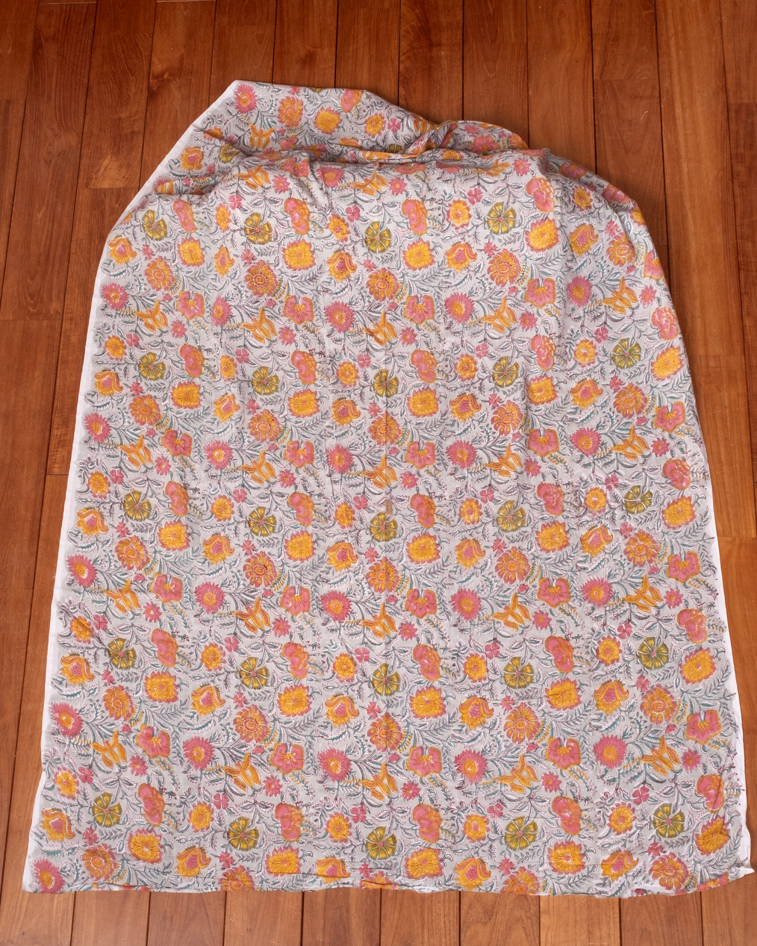 木版染めとは、ウッドブロック(木版)を用いて一つ一つ模様を染めこんだ優雅で贅沢な仕上がりの布です。大量生産には向かない、非常に時間のかかる丁寧な手仕事の賜物といえます。インドは美しい布の宝庫ですが、その中でも特に素敵な一枚に仕上がっています。ハンドメイドのウッドブロックプリントにしか出せない、独特のムラがありとても雰囲気があります。