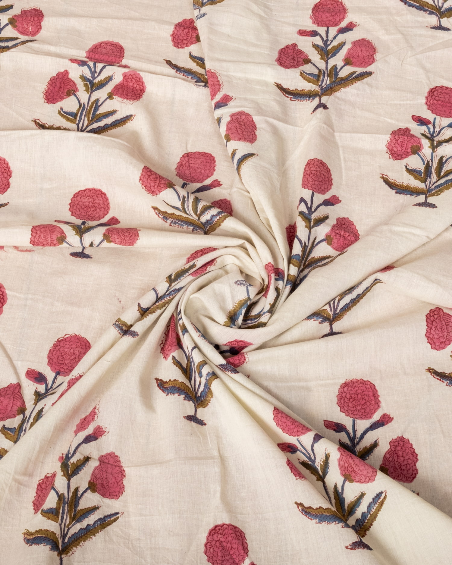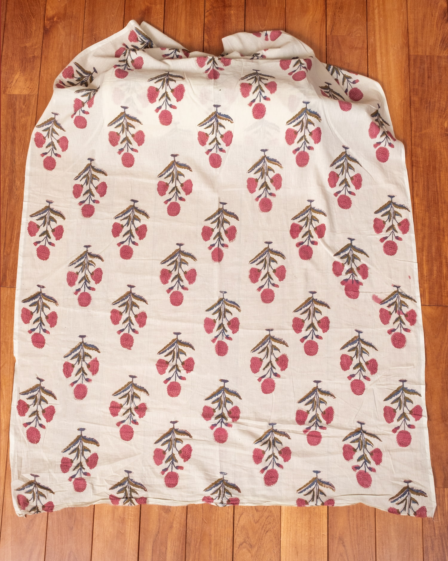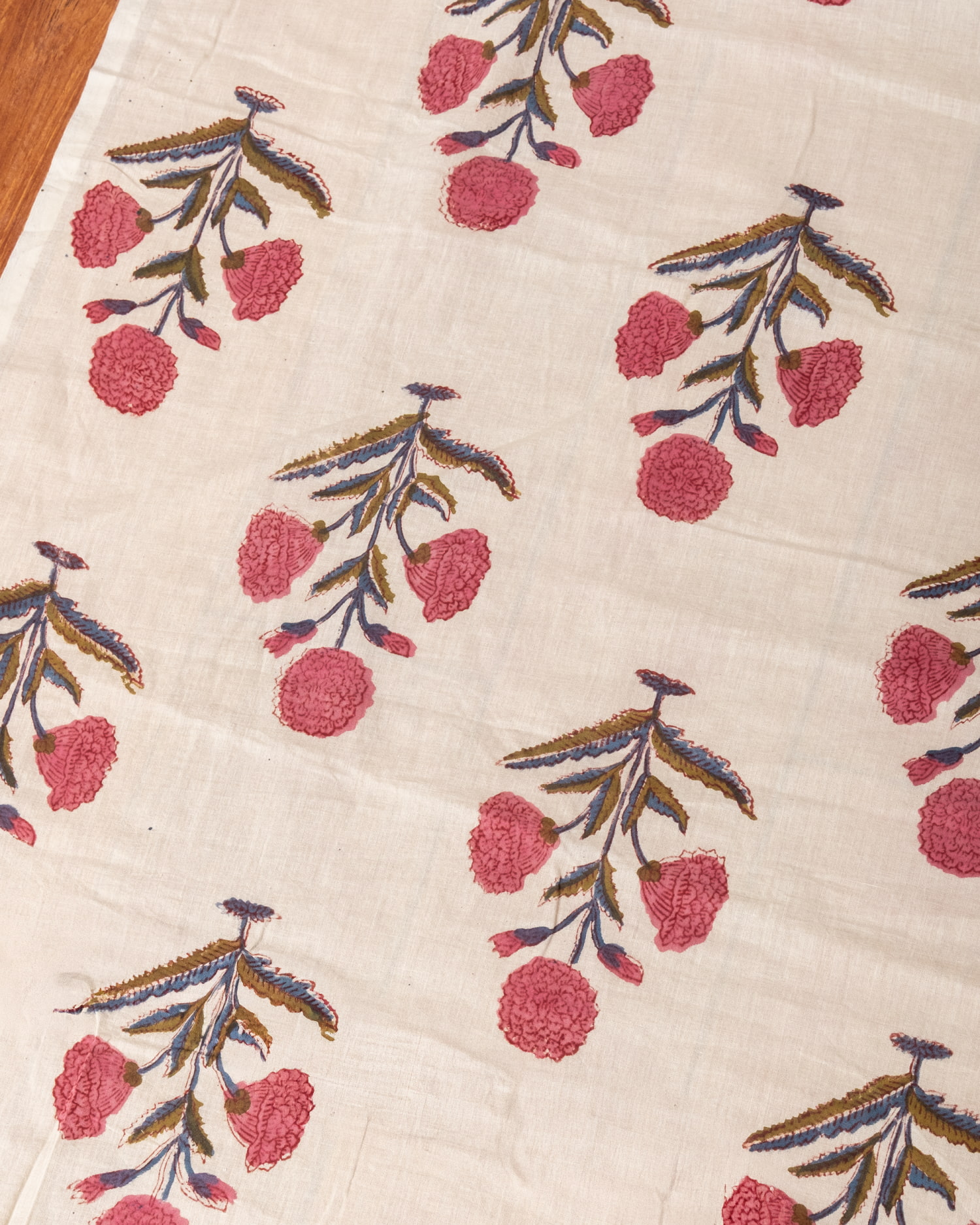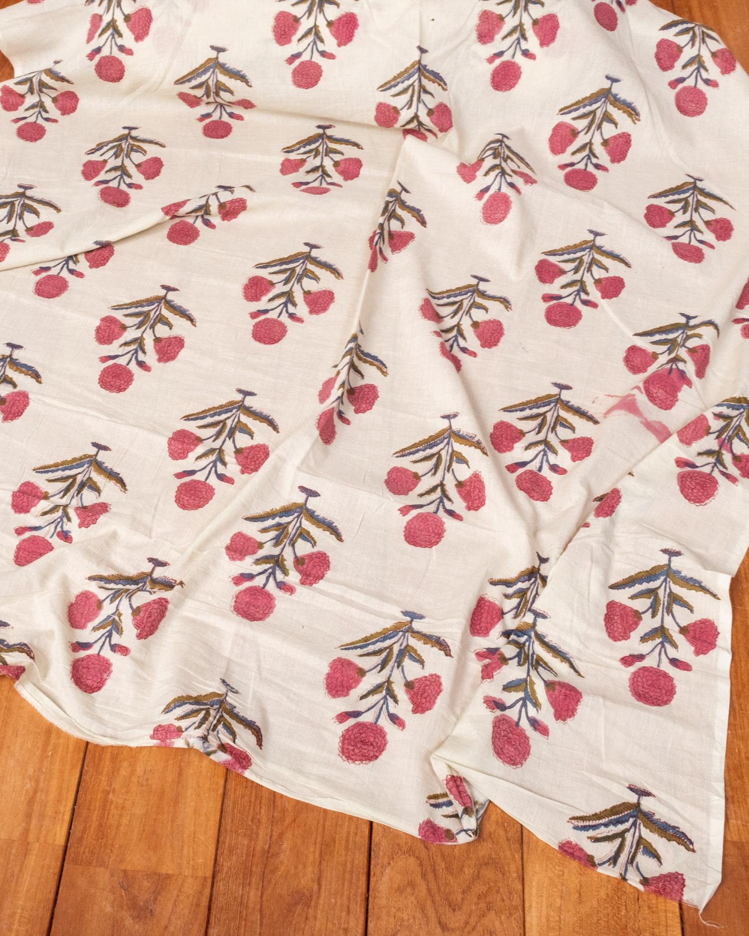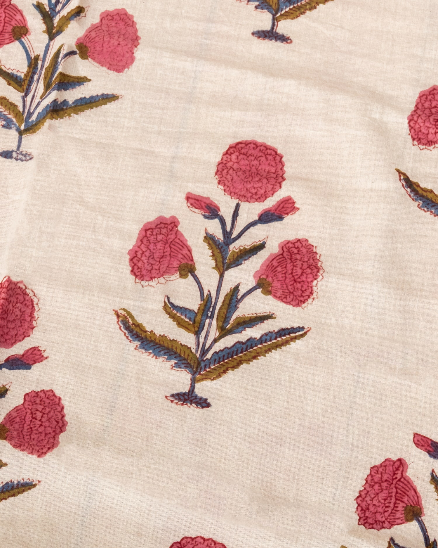 とってもかわいい生地がジャイプルからやってきました。どこかプロヴァンスなテイストも感じさせる、魅力的な色彩とデザイン。職人さんが全て手作りしており、インドらしい木版と鮮やかな色彩がきわだつ、インド綿100%のファブリックです。ナチュラルな風合いは、派手すぎずほどよく上品な雰囲気で、どんなお部屋にも馴染み、相性良くフィットしてくれそうです。