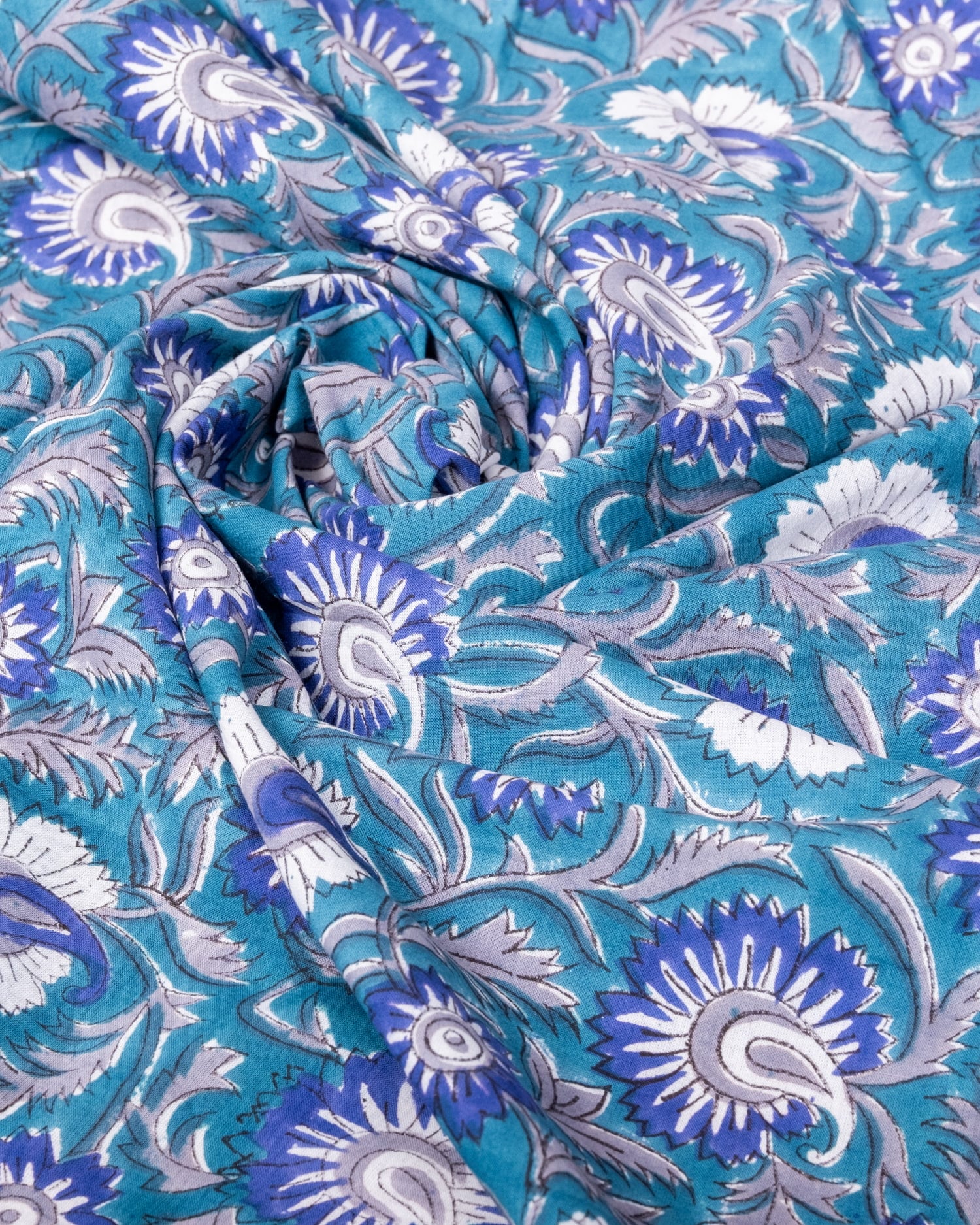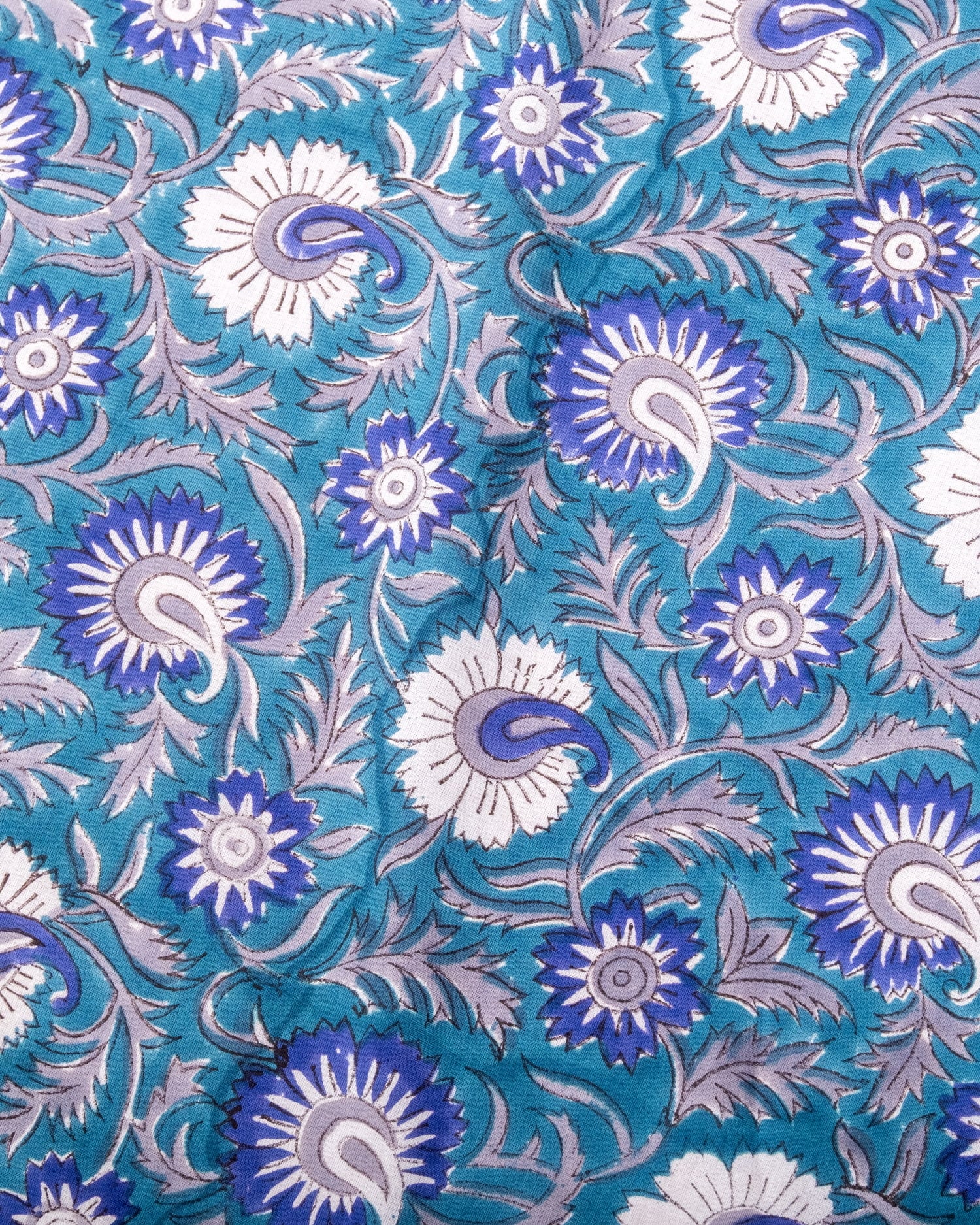 【3個セット】〔1m単位切り売り〕ジャイプル 職人手作り木版染め 色彩美しいボタニカルデザイン〔幅約108cm〕〔青緑系 更紗柄〕 おしゃれ 生地 テーブルクロス 手芸素材などへ