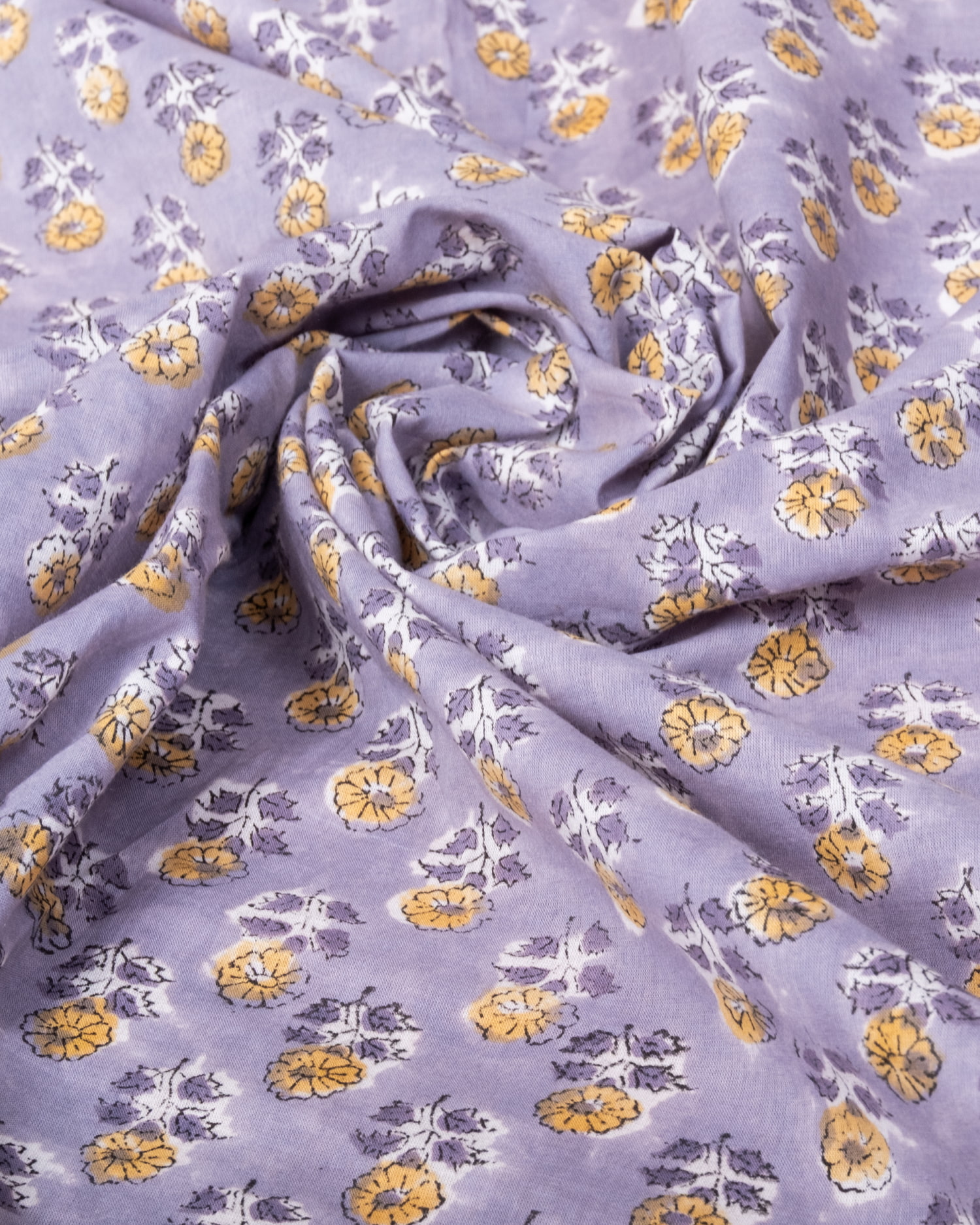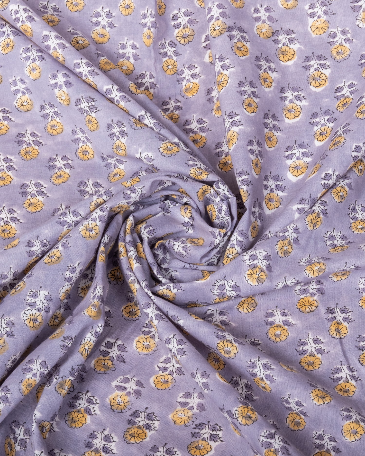 【3個セット】〔1m単位切り売り〕ジャイプル 職人手作り木版染め 色彩美しいボタニカルデザイン〔幅約108cm〕〔グレー系 小花柄〕 おしゃれ 生地 テーブルクロス 手芸素材などへ