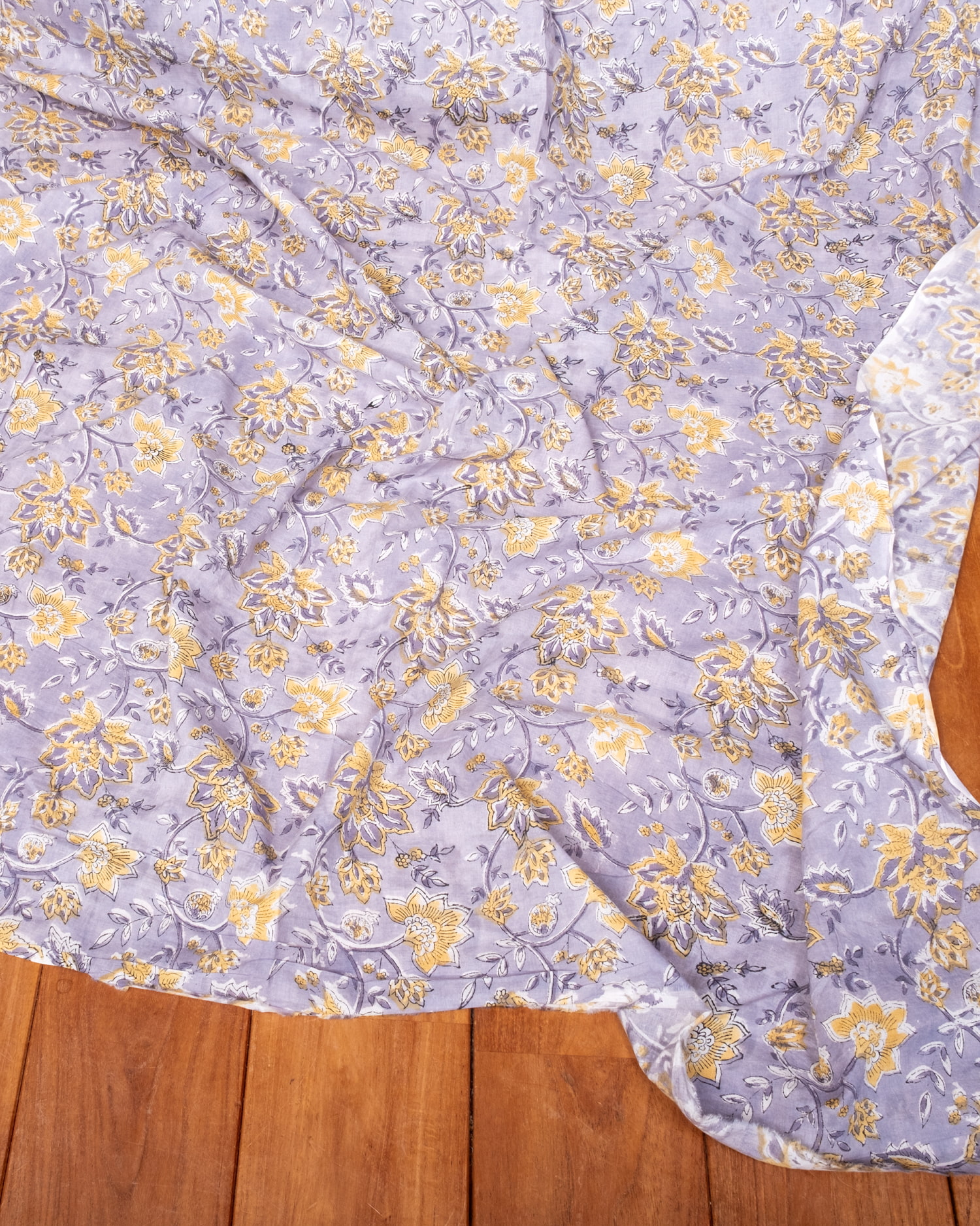 木版染めとは、ウッドブロック(木版)を用いて一つ一つ模様を染めこんだ優雅で贅沢な仕上がりの布です。大量生産には向かない、非常に時間のかかる丁寧な手仕事の賜物といえます。インドは美しい布の宝庫ですが、その中でも特に素敵な一枚に仕上がっています。ハンドメイドのウッドブロックプリントにしか出せない、独特のムラがありとても雰囲気があります。