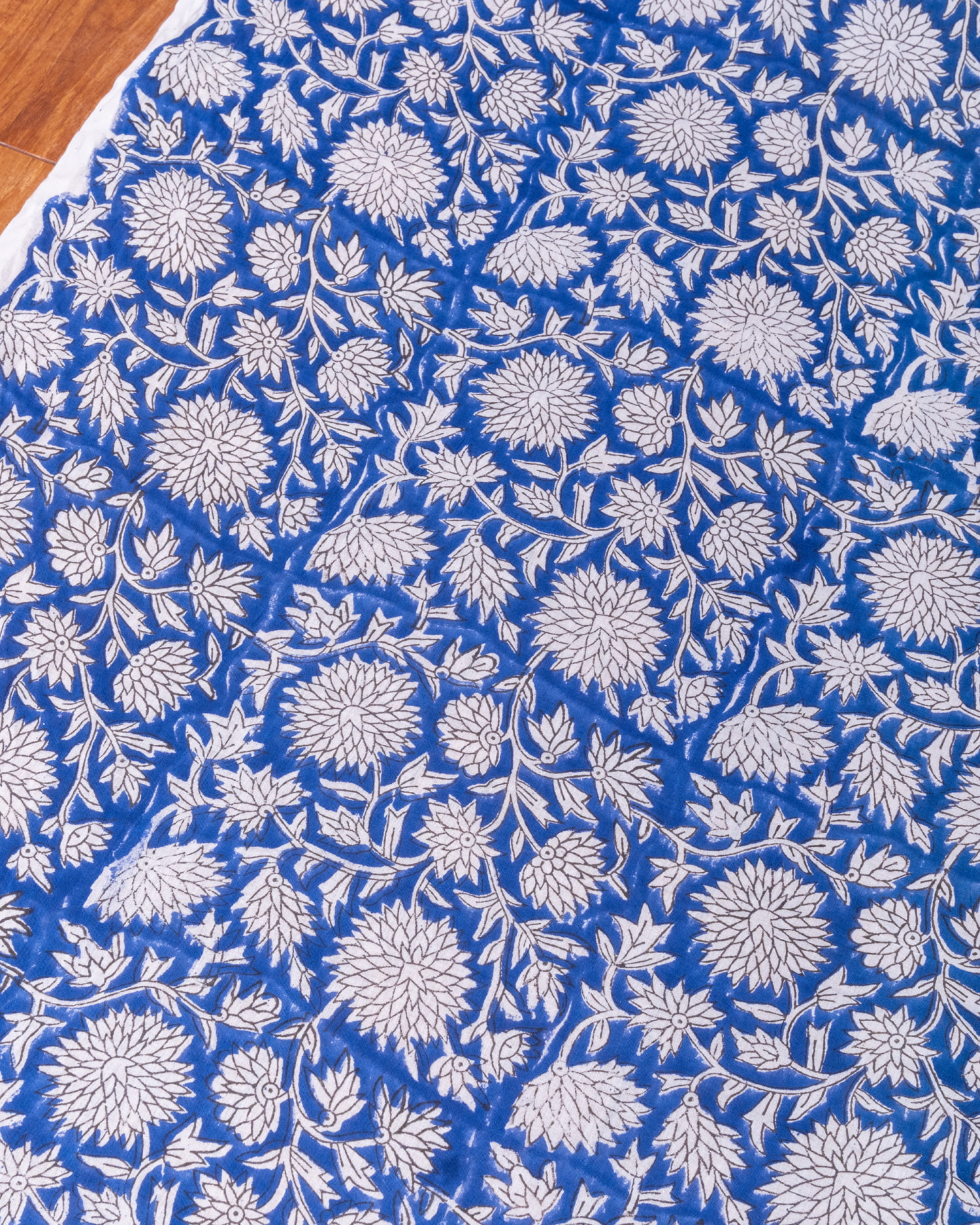 【5個セット】〔1m単位切り売り〕ジャイプル 職人手作り木版染め 色彩美しいボタニカルデザイン〔幅約113cm〕〔ブルー系 更紗柄〕 おしゃれ 生地 テーブルクロス 手芸素材などへ