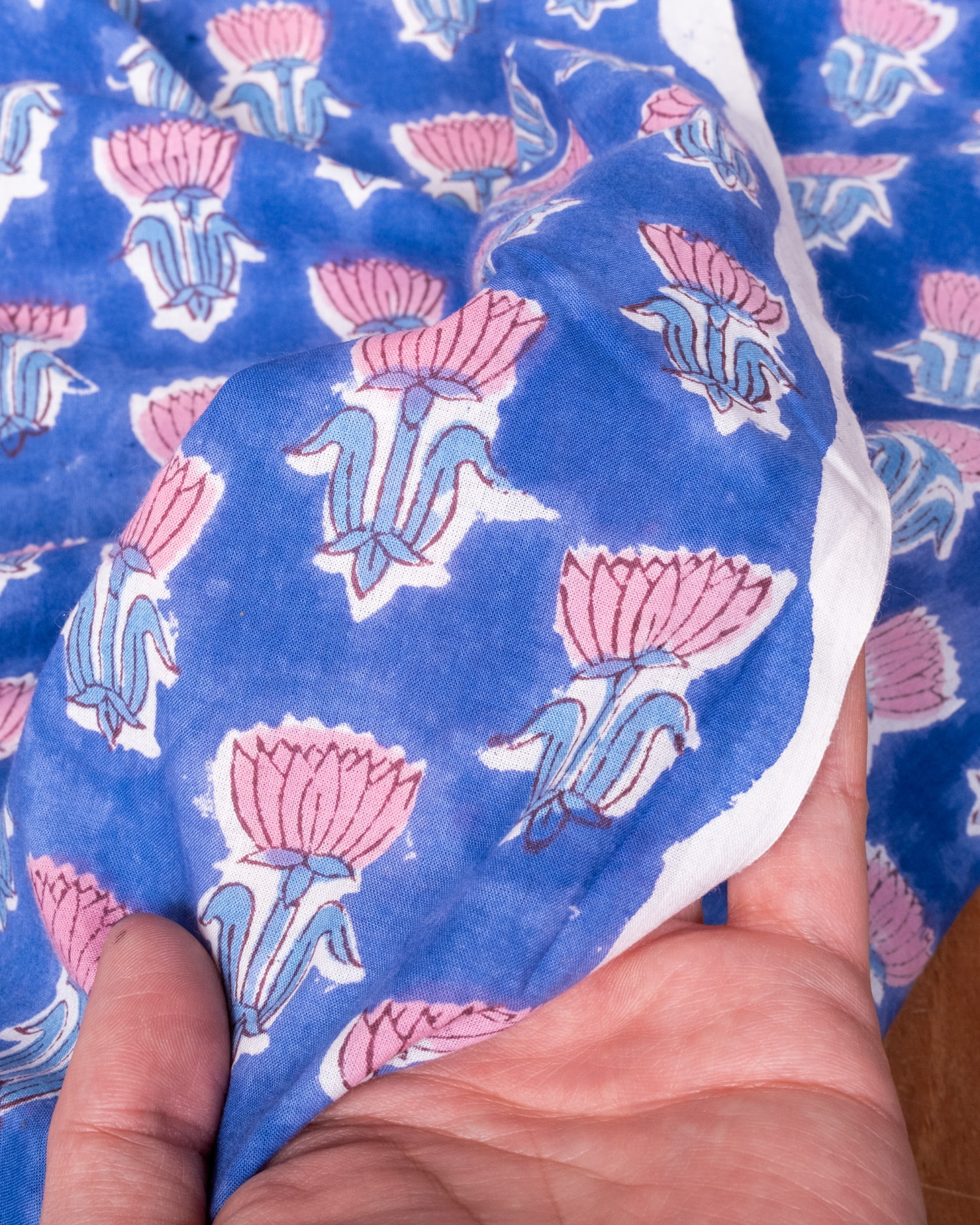 とってもかわいい生地がジャイプルからやってきました。どこかプロヴァンスなテイストも感じさせる、魅力的な色彩とデザイン。職人さんが全て手作りしており、インドらしい木版と鮮やかな色彩がきわだつ、インド綿100%のファブリックです。ナチュラルな風合いは、派手すぎずほどよく上品な雰囲気で、どんなお部屋にも馴染み、相性良くフィットしてくれそうです。