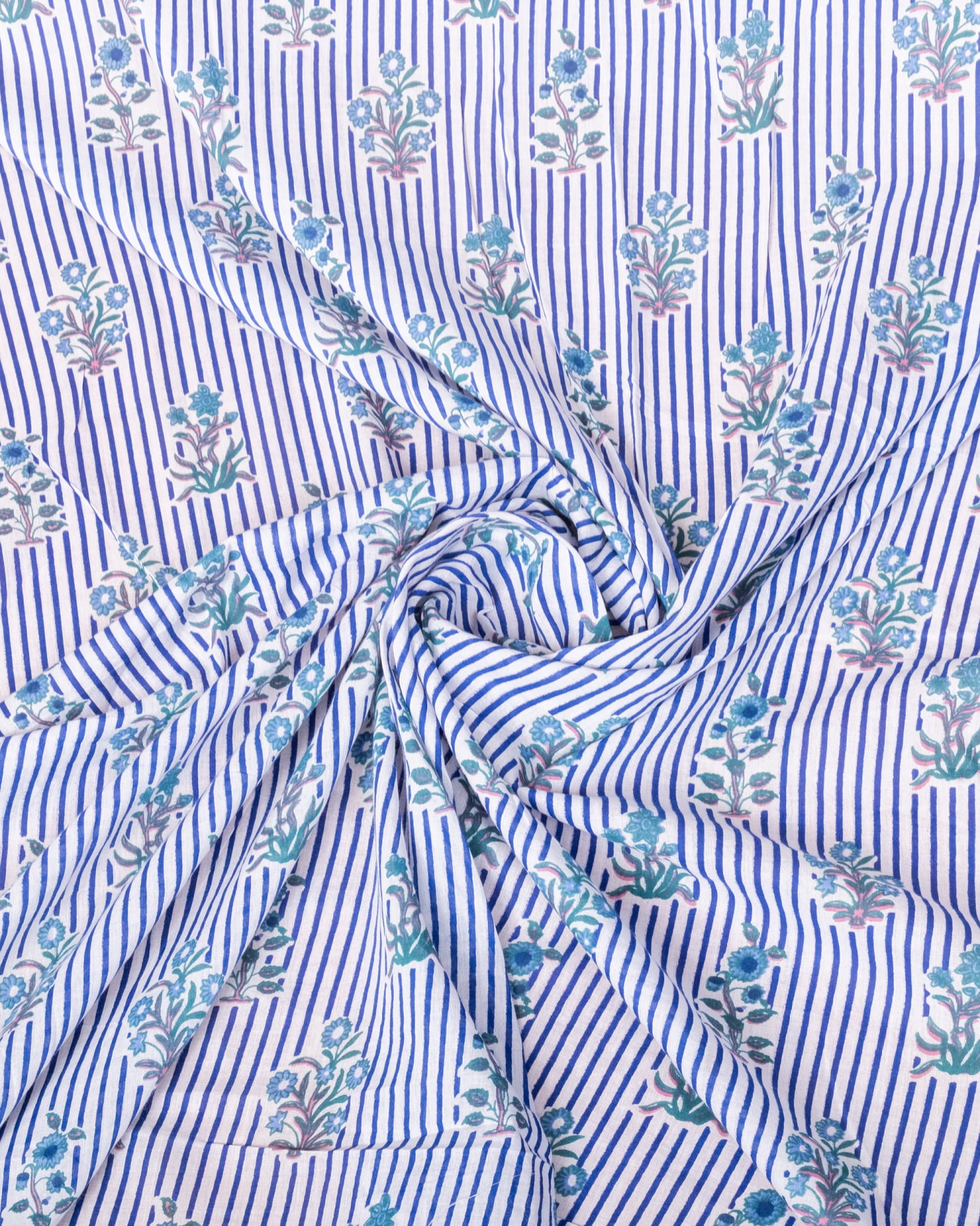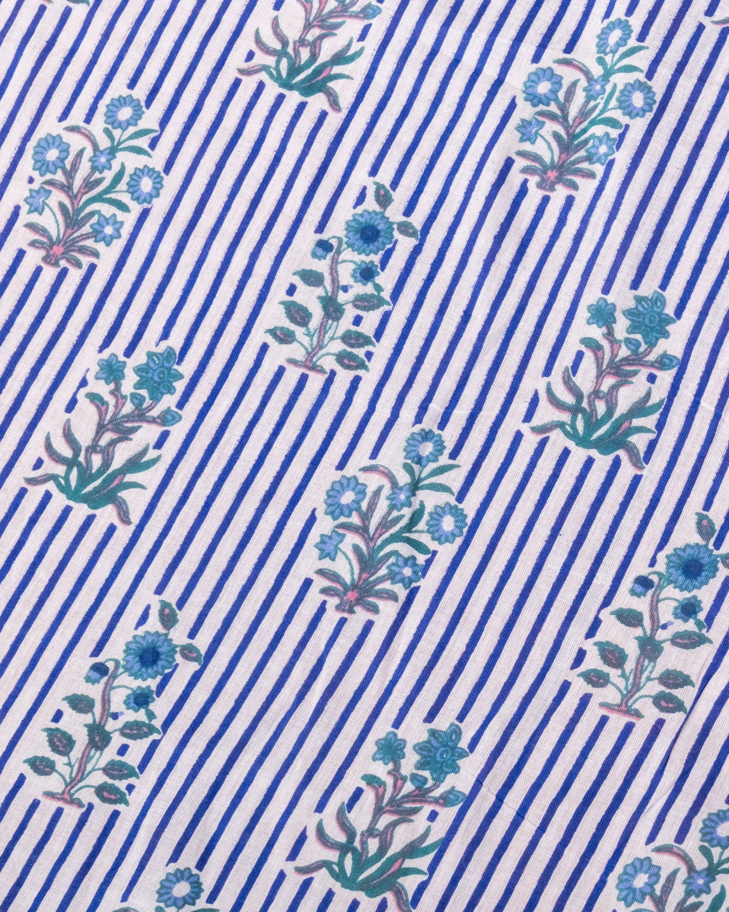 【5個セット】〔1m単位切り売り〕ジャイプル 職人手作り木版染め 色彩美しいボタニカルデザイン〔幅約113cm〕〔ブルー系 更紗柄〕 おしゃれ 生地 テーブルクロス 手芸素材などへ