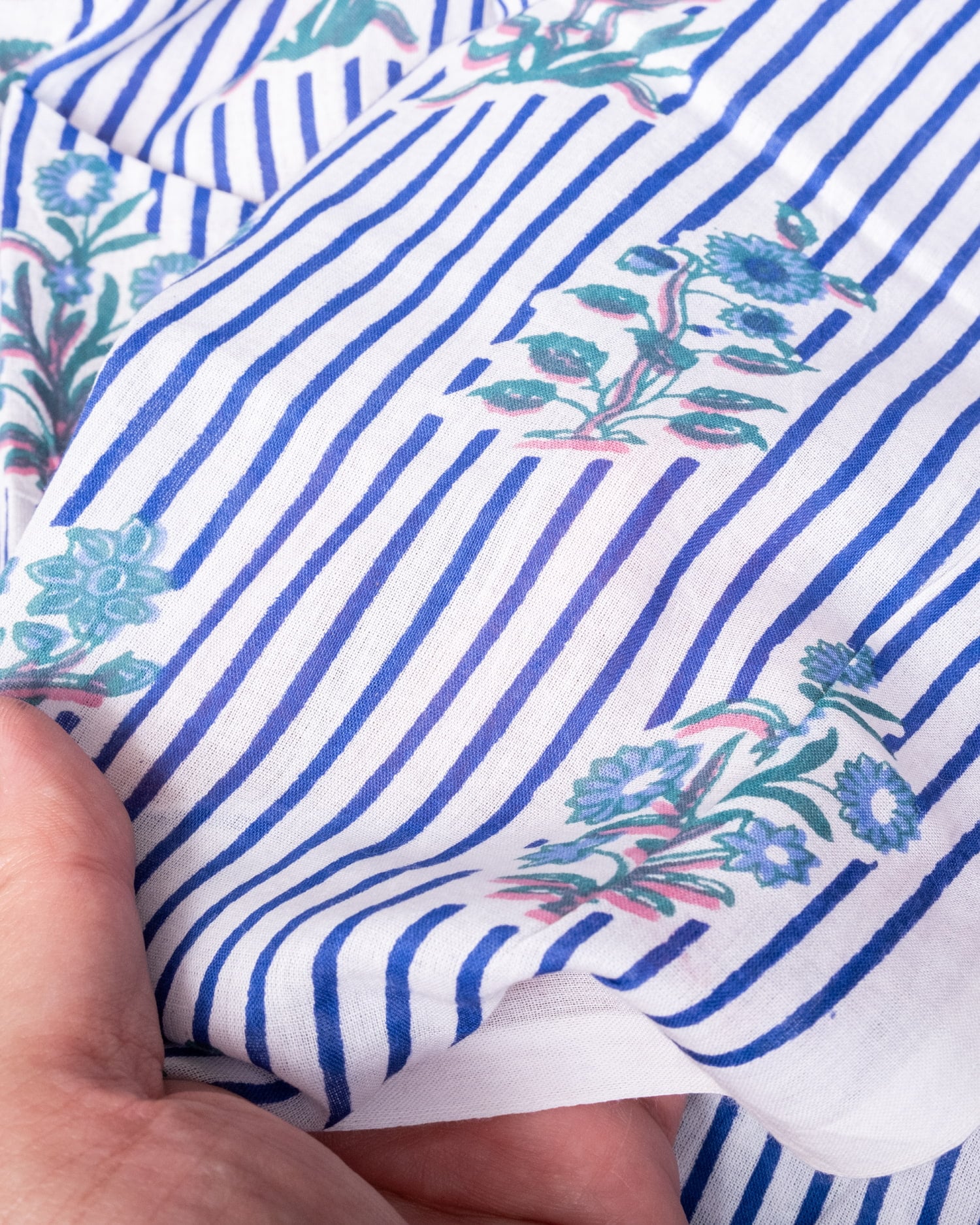 とってもかわいい生地がジャイプルからやってきました。どこかプロヴァンスなテイストも感じさせる、魅力的な色彩とデザイン。職人さんが全て手作りしており、インドらしい木版と鮮やかな色彩がきわだつ、インド綿100%のファブリックです。ナチュラルな風合いは、派手すぎずほどよく上品な雰囲気で、どんなお部屋にも馴染み、相性良くフィットしてくれそうです。