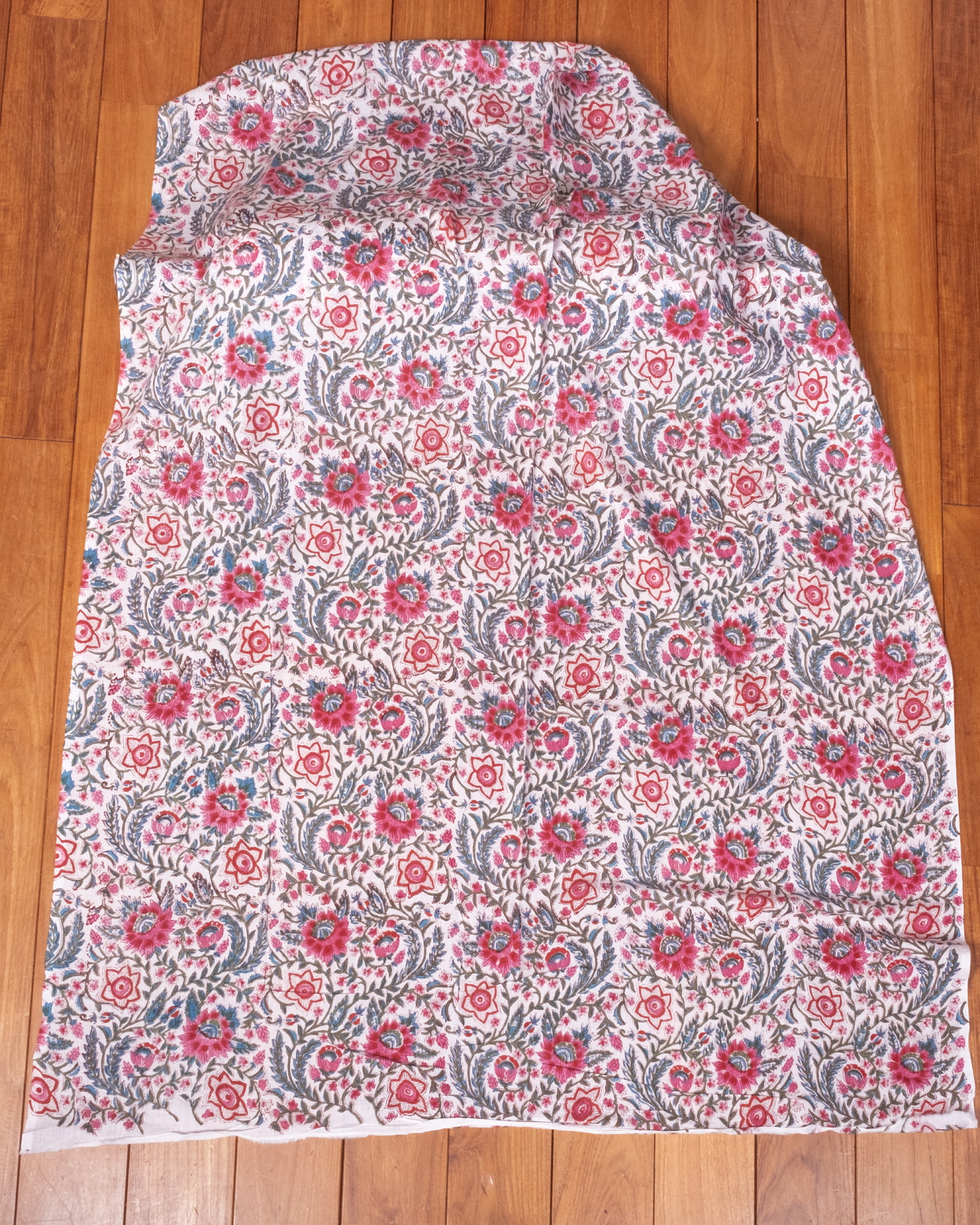 木版染めとは、ウッドブロック(木版)を用いて一つ一つ模様を染めこんだ優雅で贅沢な仕上がりの布です。大量生産には向かない、非常に時間のかかる丁寧な手仕事の賜物といえます。インドは美しい布の宝庫ですが、その中でも特に素敵な一枚に仕上がっています。ハンドメイドのウッドブロックプリントにしか出せない、独特のムラがありとても雰囲気があります。