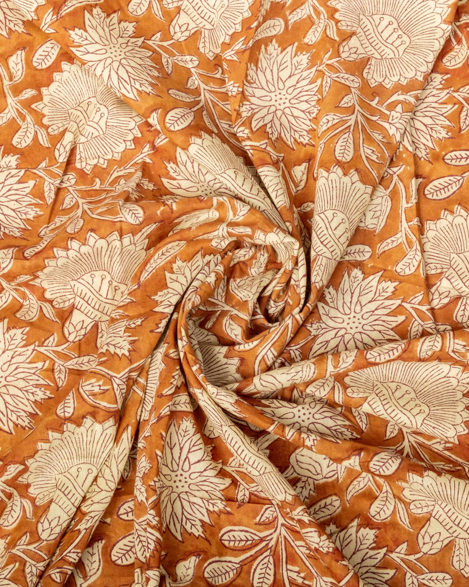 【5個セット】〔1m単位切り売り〕ジャイプル 職人手作り木版染め 色彩美しいボタニカルデザイン〔幅約110cm〕〔ブラウン系 更紗柄〕 おしゃれ 生地 テーブルクロス 手芸素材などへ