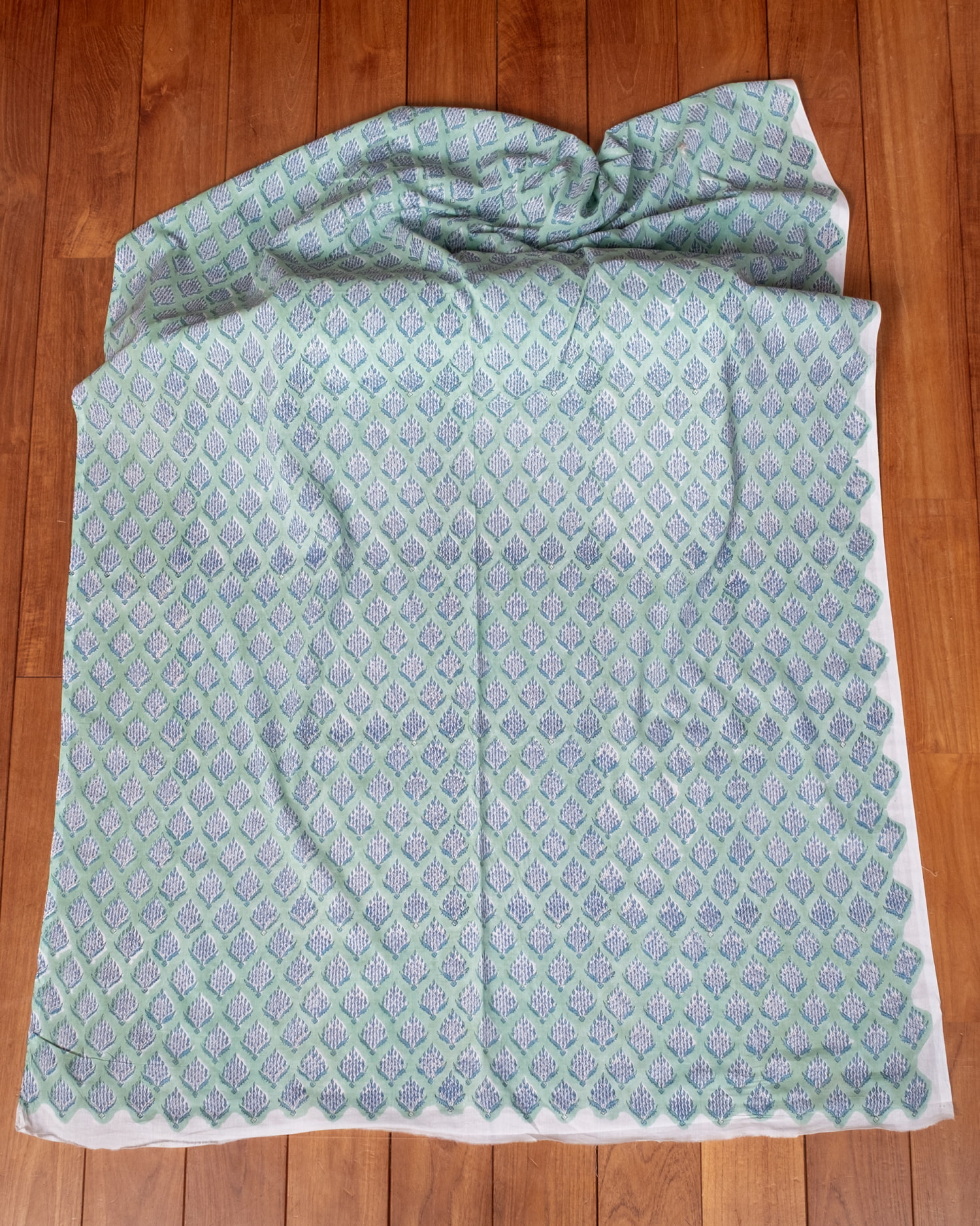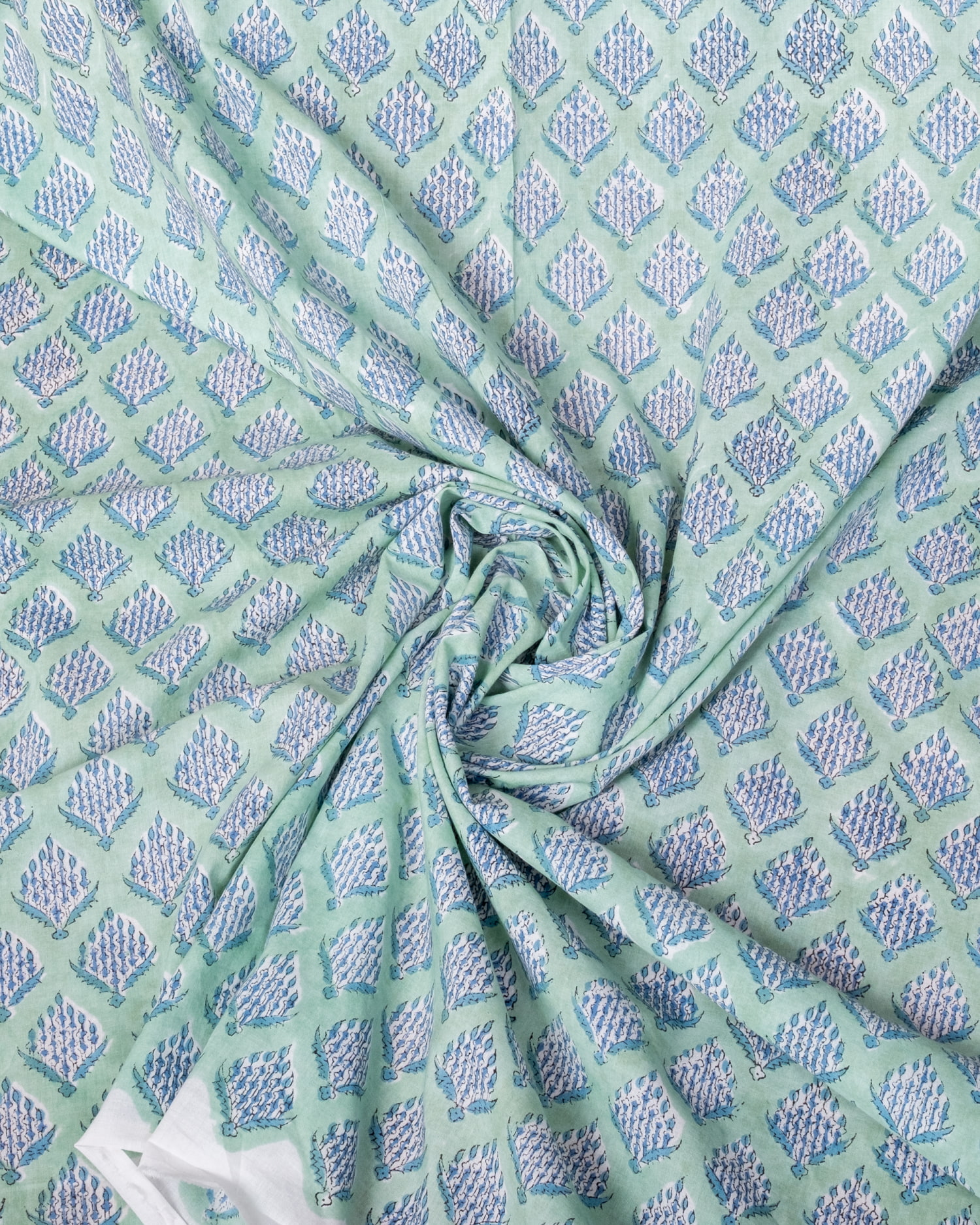 【5個セット】〔1m単位切り売り〕ジャイプル 職人手作り木版染め 色彩美しいボタニカルデザイン〔幅約106cm〕〔ミントグリーン系 小花柄〕 おしゃれ 生地 テーブルクロス 手芸素材などへ