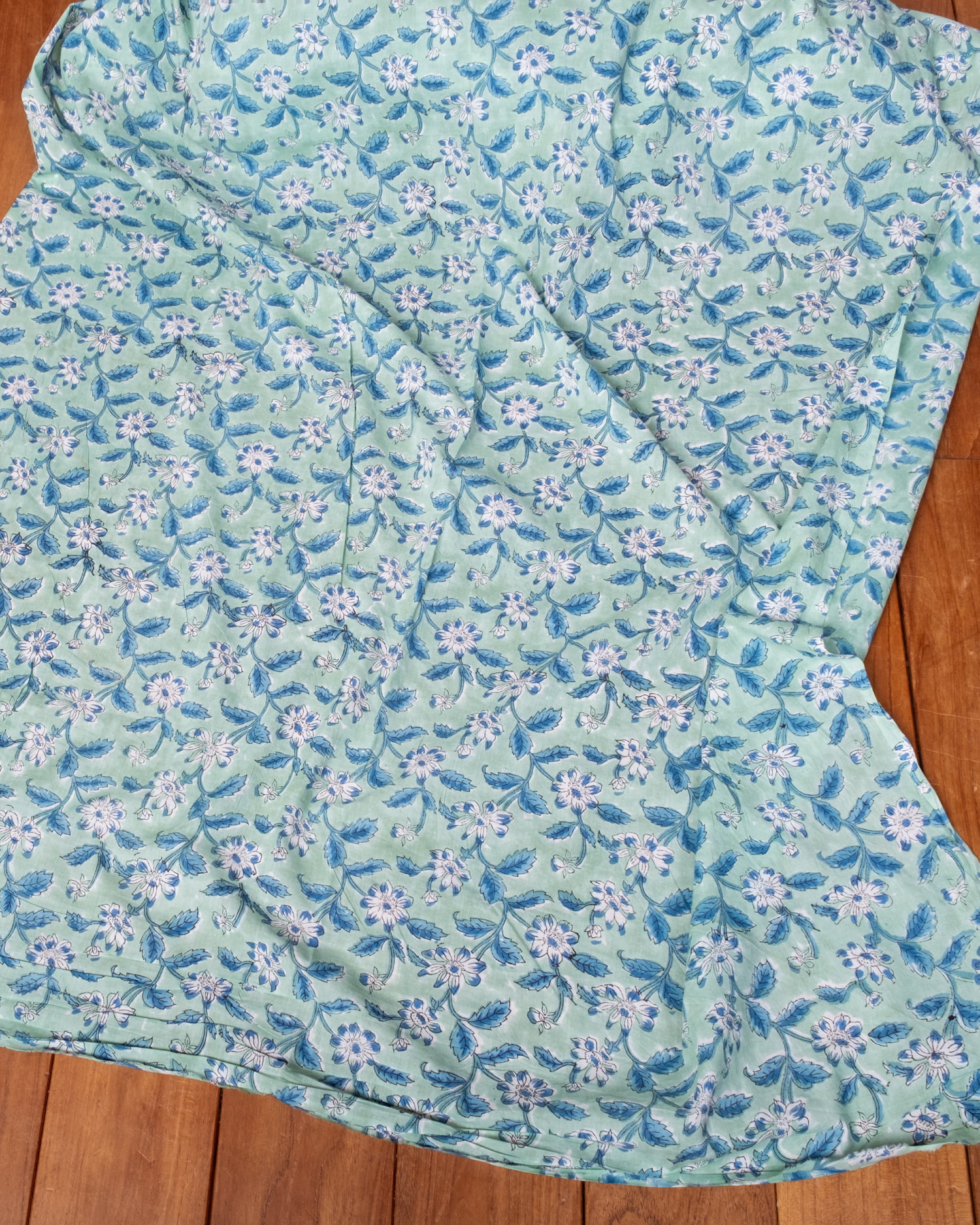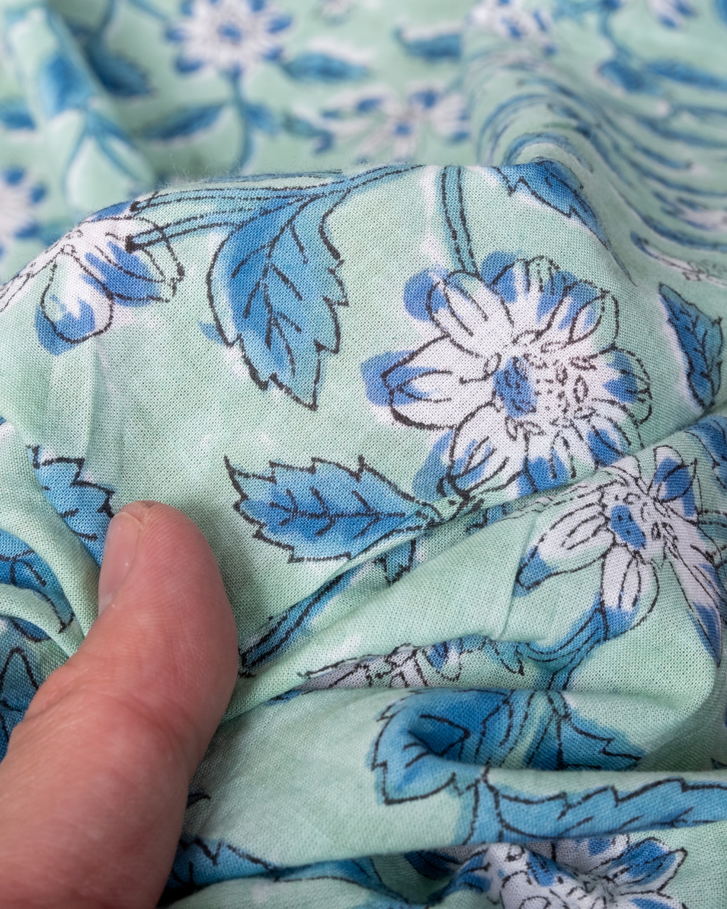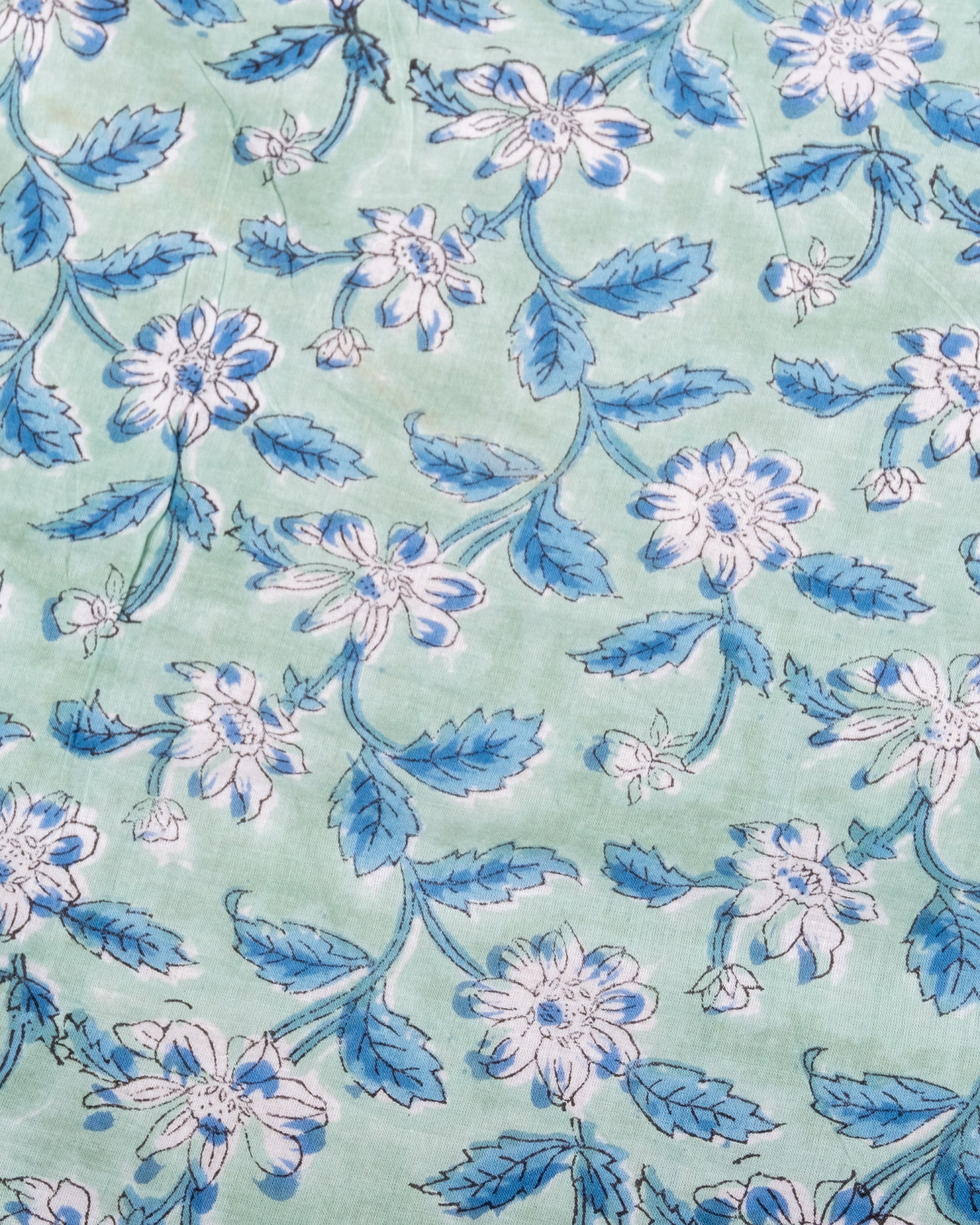 【5個セット】〔1m単位切り売り〕ジャイプル 職人手作り木版染め 色彩美しいボタニカルデザイン〔幅約106cm〕〔ミントグリーン系 更紗柄〕 おしゃれ 生地 テーブルクロス 手芸素材などへ