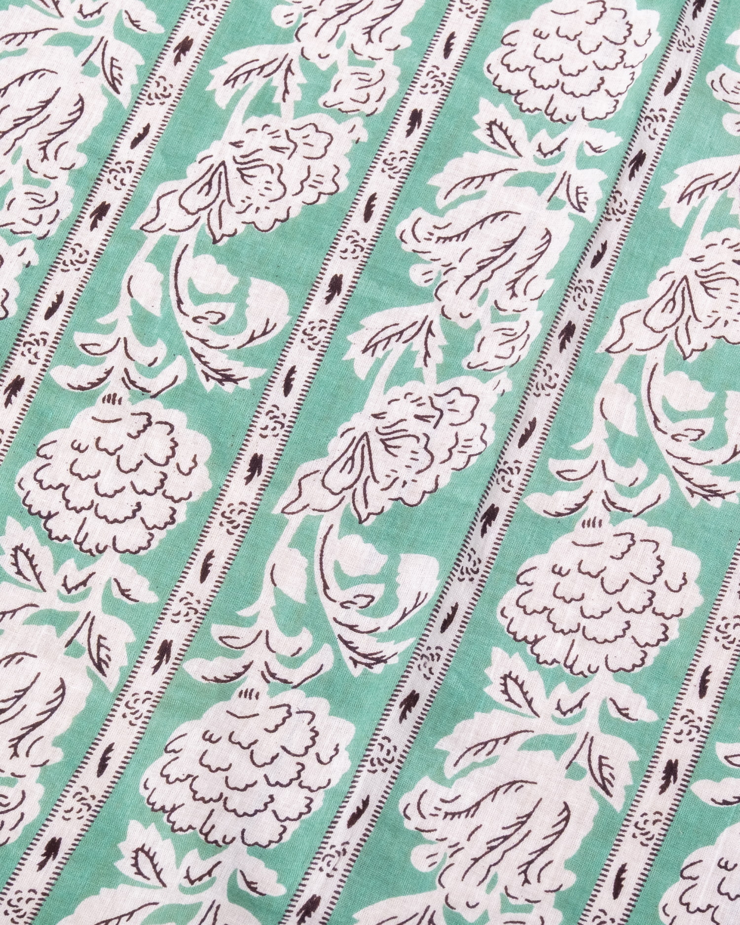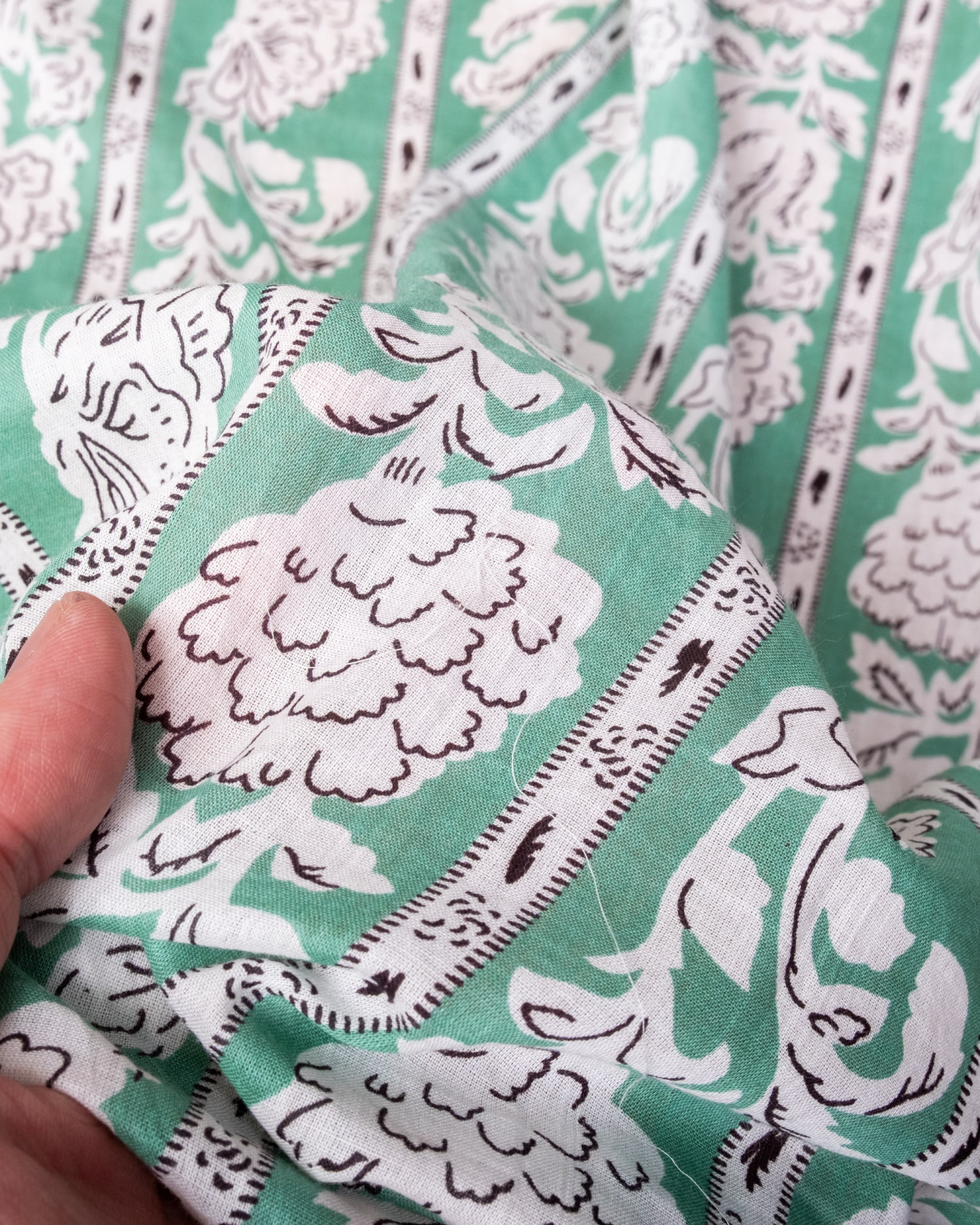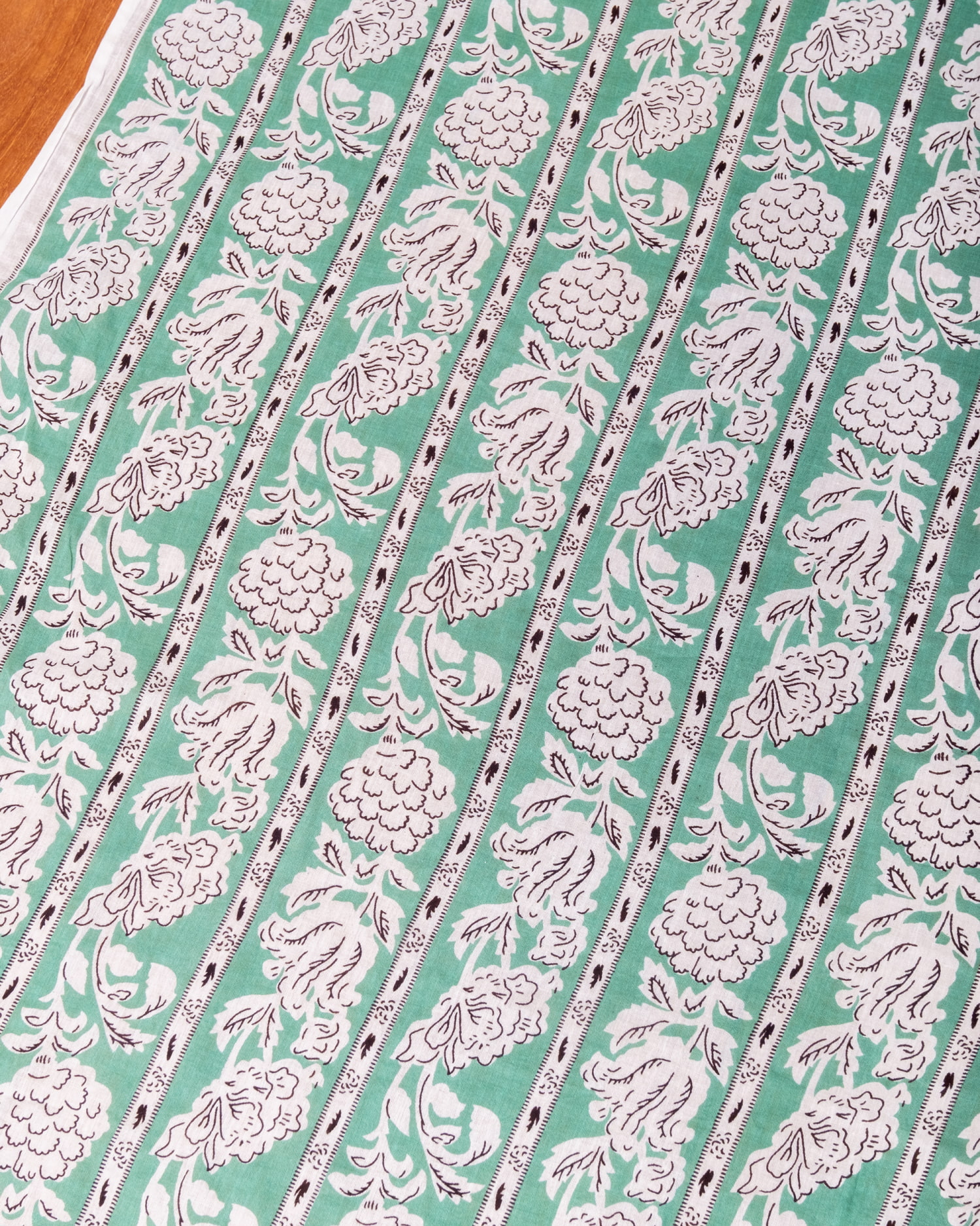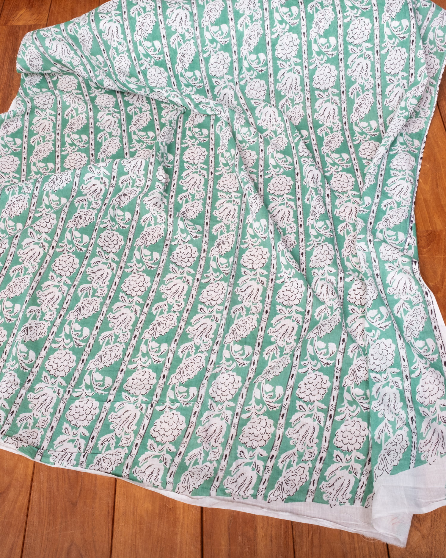 【5個セット】〔1m単位切り売り〕ジャイプル 職人手作り木版染め 色彩美しいボタニカルデザイン〔幅約111cm〕〔ミントグリーン系 更紗柄〕 おしゃれ 生地 テーブルクロス 手芸素材などへ