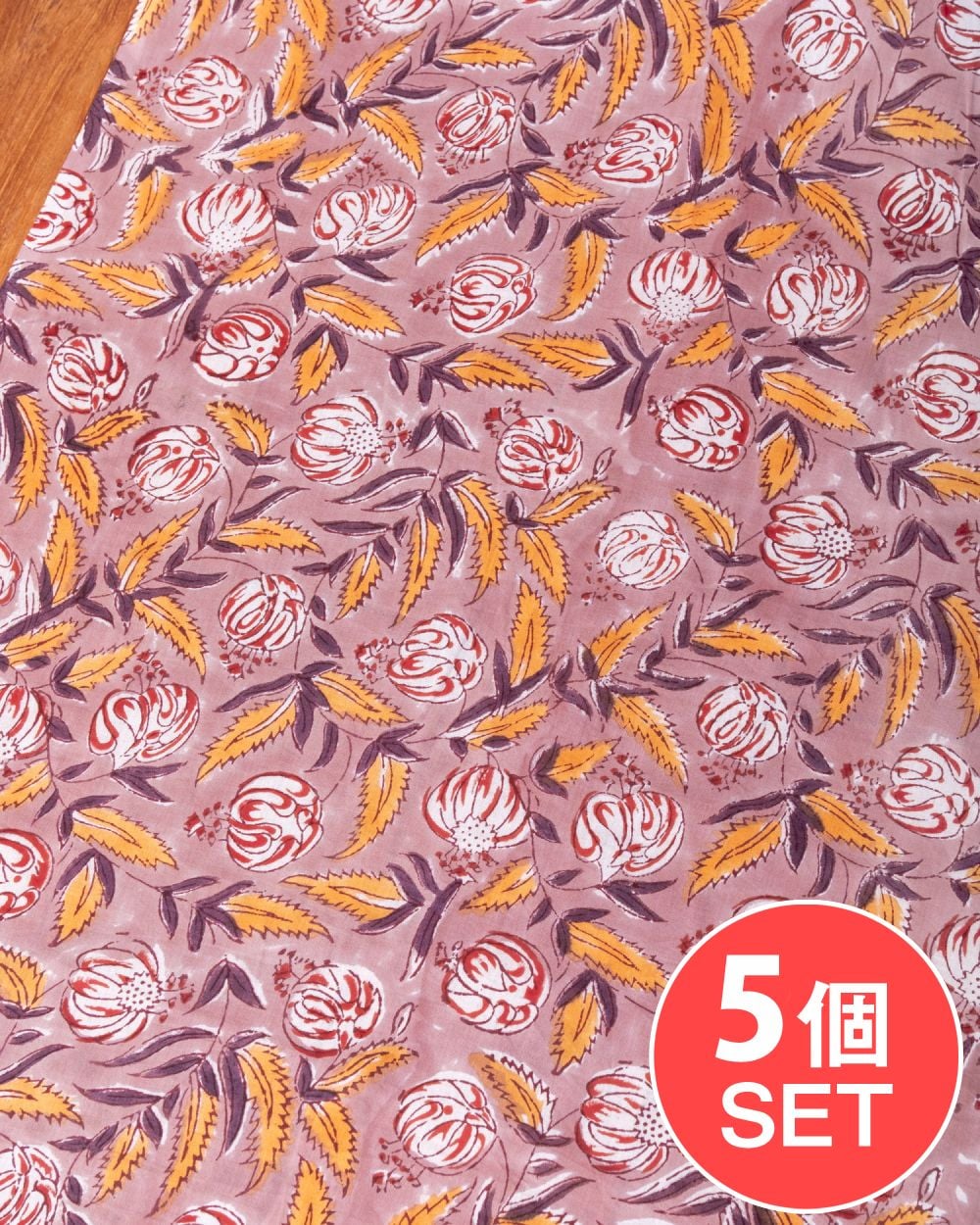 【5個セット】〔1m単位切り売り〕ジャイプル 職人手作り木版染め 色彩美しいボタニカルデザイン〔幅約109cm〕〔あずき×ブラウン系 更紗柄〕 おしゃれ 生地 テーブルクロス 手芸素材などへ