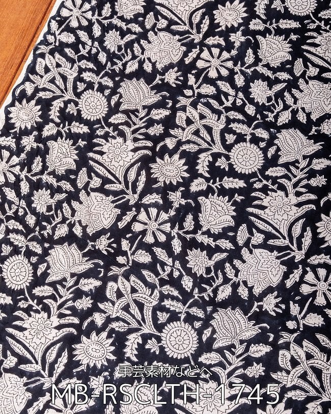 〔1m単位切り売り〕ジャイプル 職人手作り木版染め 色彩美しいボタニカルデザイン〔幅約109cm〕〔ブラック系 更紗柄〕 おしゃれ 生地 テーブルクロス 手芸素材などへ x 5個