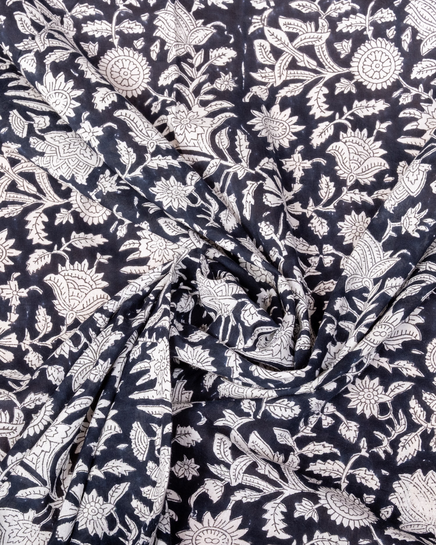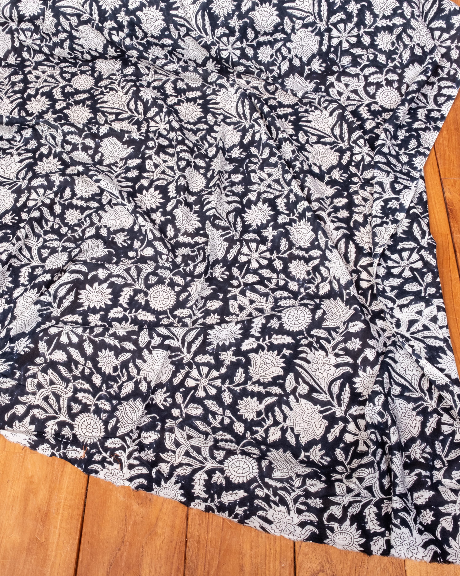 【5個セット】〔1m単位切り売り〕ジャイプル 職人手作り木版染め 色彩美しいボタニカルデザイン〔幅約109cm〕〔ブラック系 更紗柄〕 おしゃれ 生地 テーブルクロス 手芸素材などへ