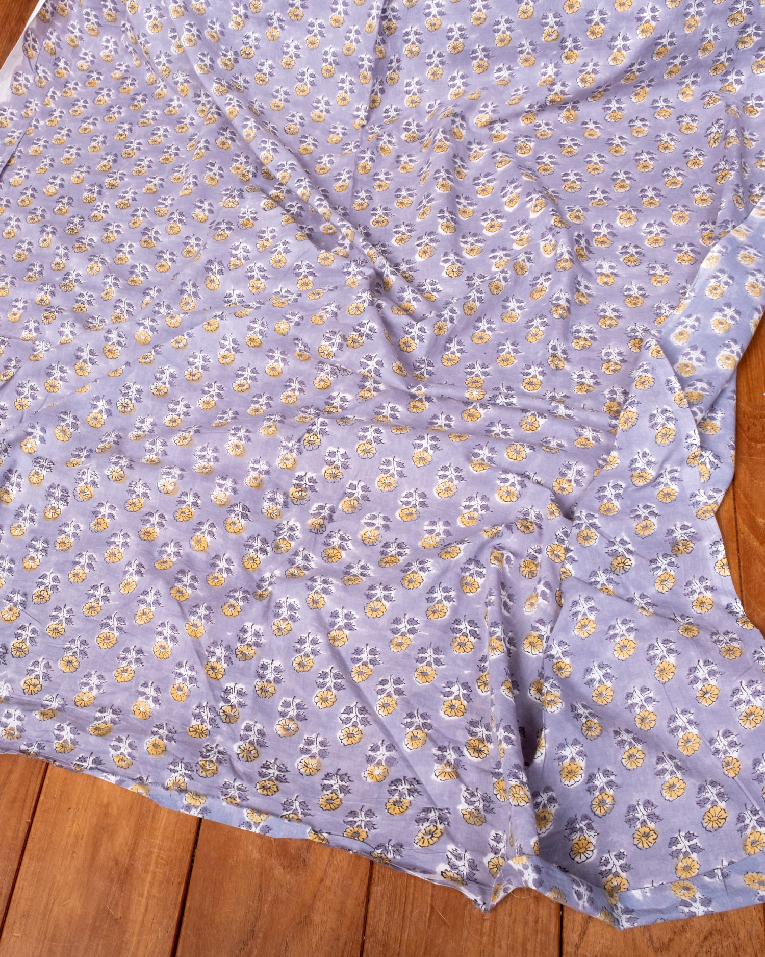 【5個セット】〔1m単位切り売り〕ジャイプル 職人手作り木版染め 色彩美しいボタニカルデザイン〔幅約108cm〕〔グレー系 小花柄〕 おしゃれ 生地 テーブルクロス 手芸素材などへ