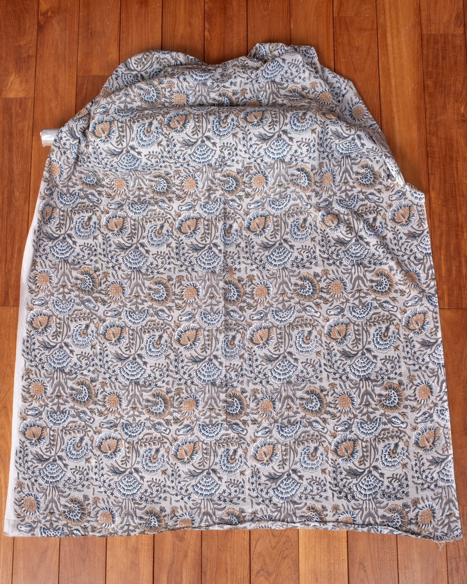 〔1m単位切り売り〕ジャイプル 職人手作り木版染め 色彩美しいボタニカルデザイン〔幅約113cm〕〔薄グレー系 更紗柄〕 おしゃれ 生地 テーブルクロス 手芸素材などへ x 5個