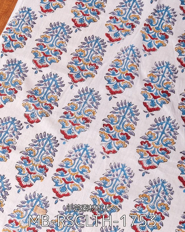 【5個セット】〔1m単位切り売り〕ジャイプル 職人手作り木版染め 色彩美しいボタニカルデザイン〔幅約109cm〕〔白×青×赤×橙系 更紗柄〕 おしゃれ 生地 テーブルクロス 手芸素材などへ