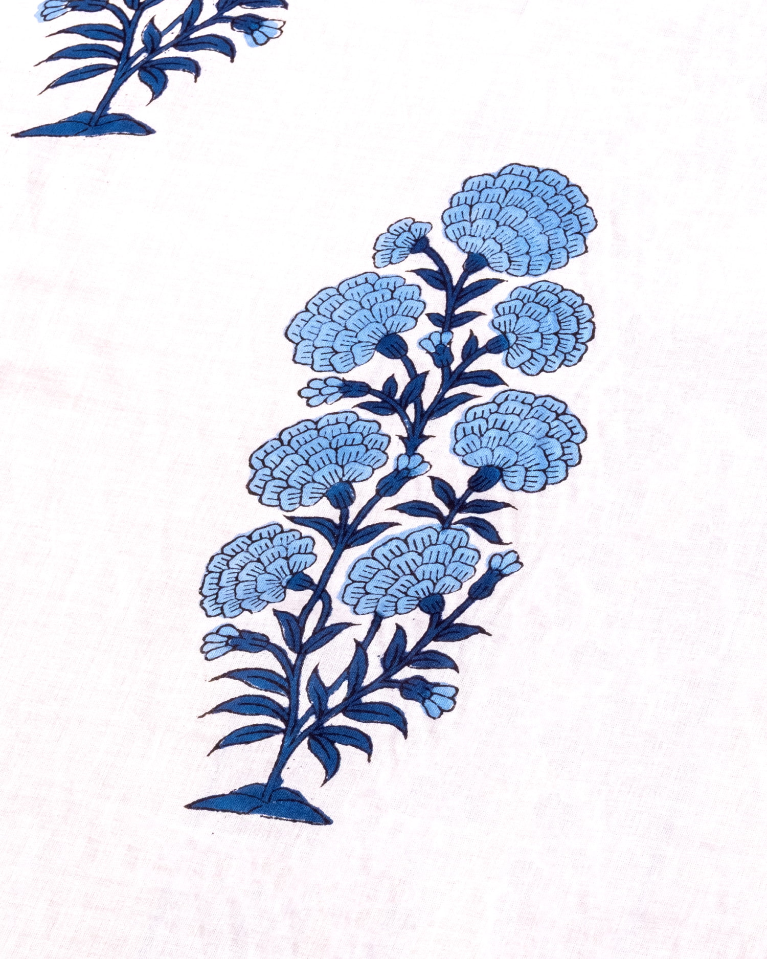 〔1m単位切り売り〕ジャイプル 職人手作り木版染め 色彩美しいボタニカルデザイン〔幅約110cm〕〔白×青系 植物柄〕 おしゃれ 生地 テーブルクロス 手芸素材などへ x 5個