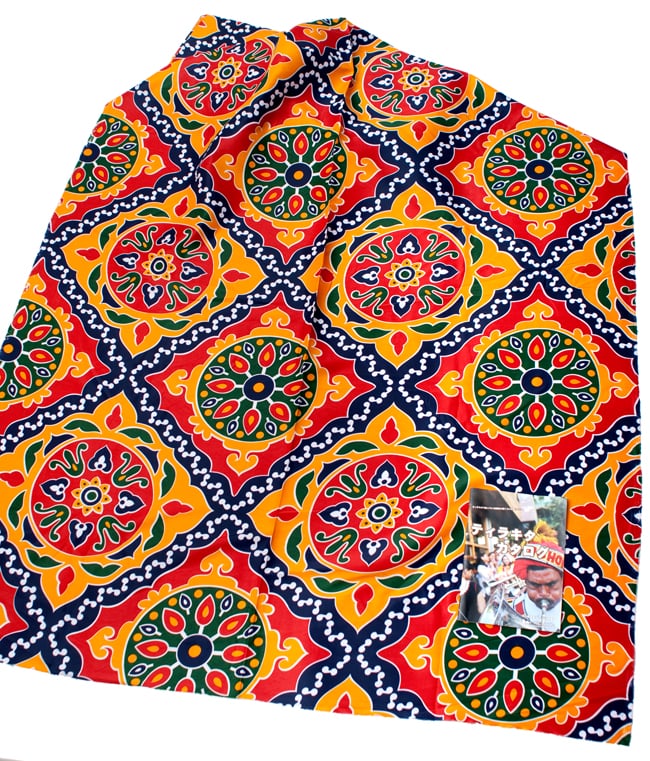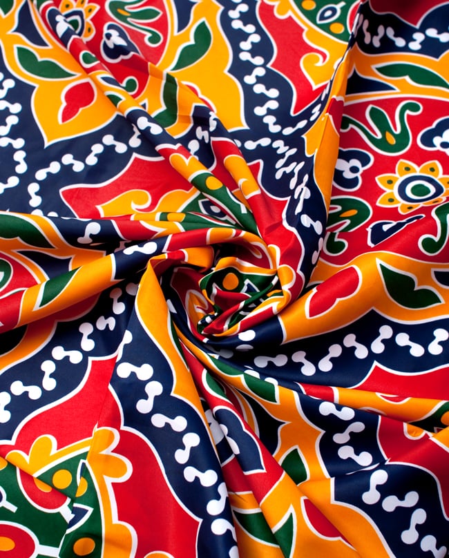 インドの伝統模様がドカンとプリントされた、色鮮やかな布地です。飾り布としての存在感は抜群です。■化繊で丈夫!!