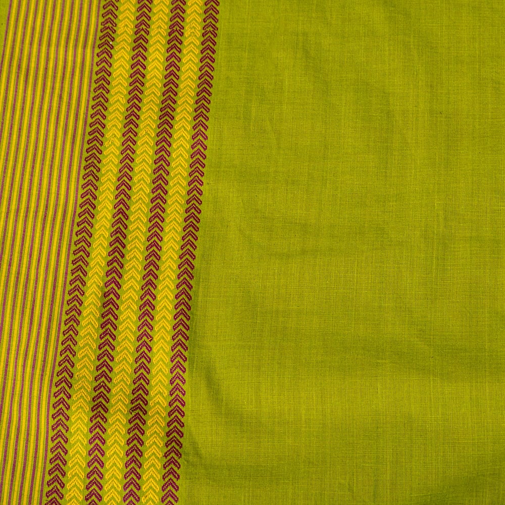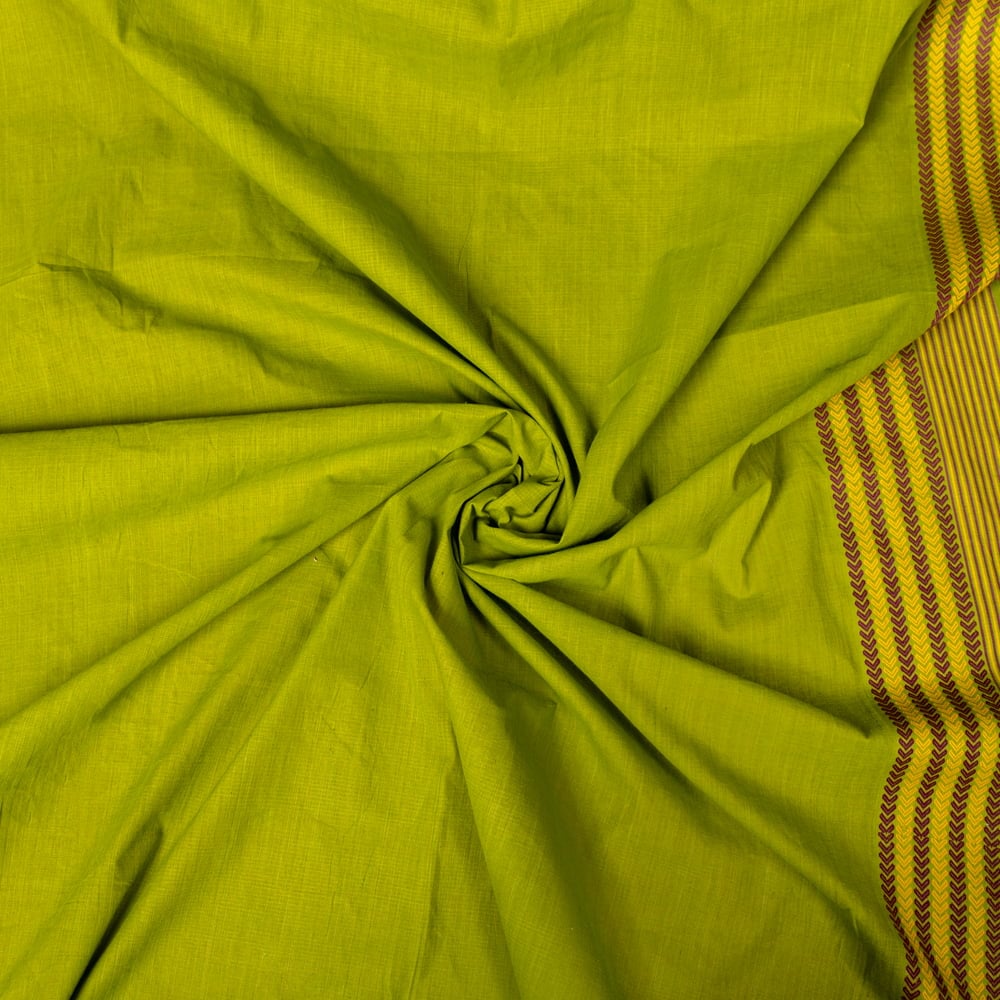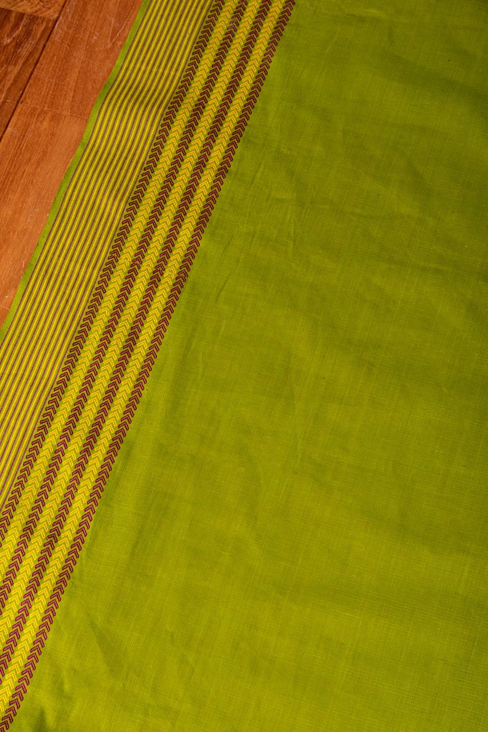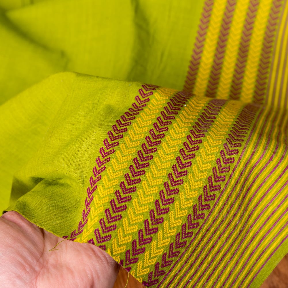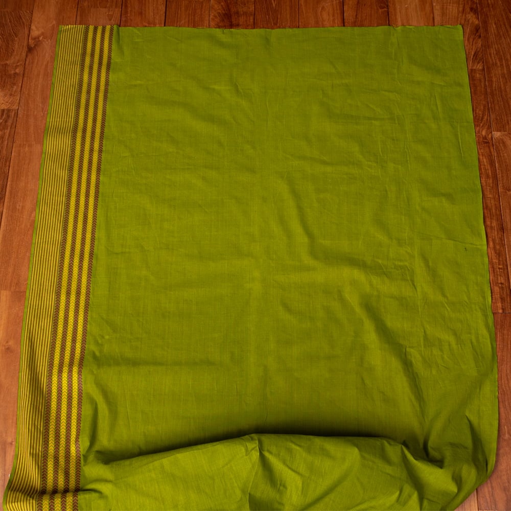 〔1m単位切り売り〕南インドのハーフボーダーコットンクロス〔幅約108cm〕 - グリーン