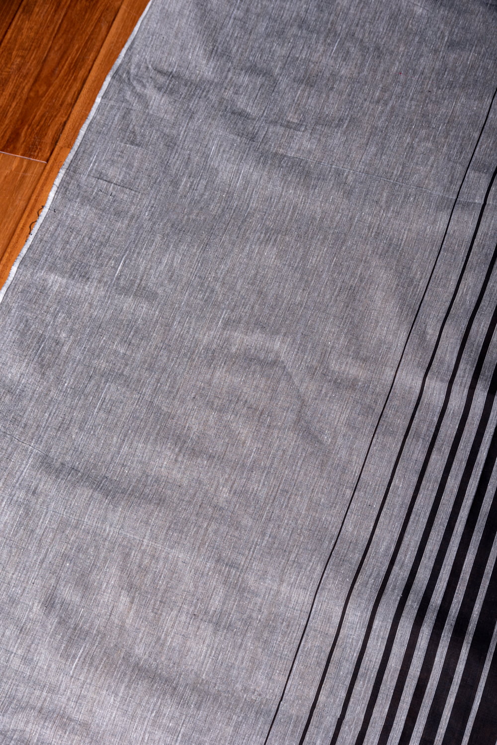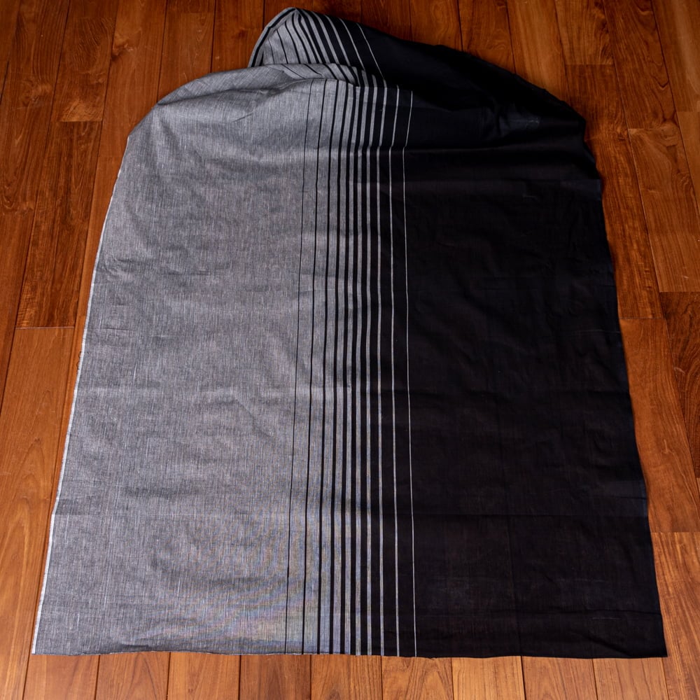 〔1m単位切り売り〕南インドのバイカラーセンターストライプ布〔幅約108cm〕 - ブラック×グレー