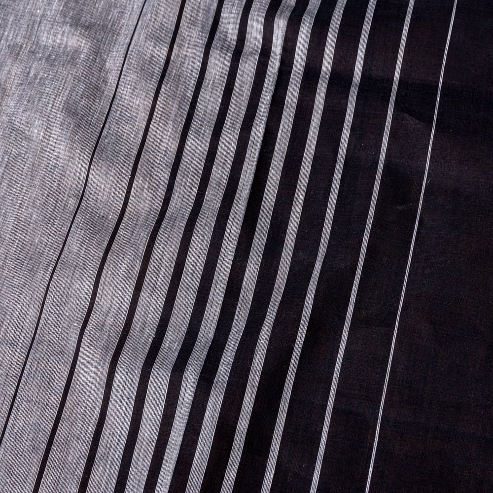 〔1m単位切り売り〕南インドのバイカラーセンターストライプ布〔幅約108cm〕 - ブラック×グレー 通販店